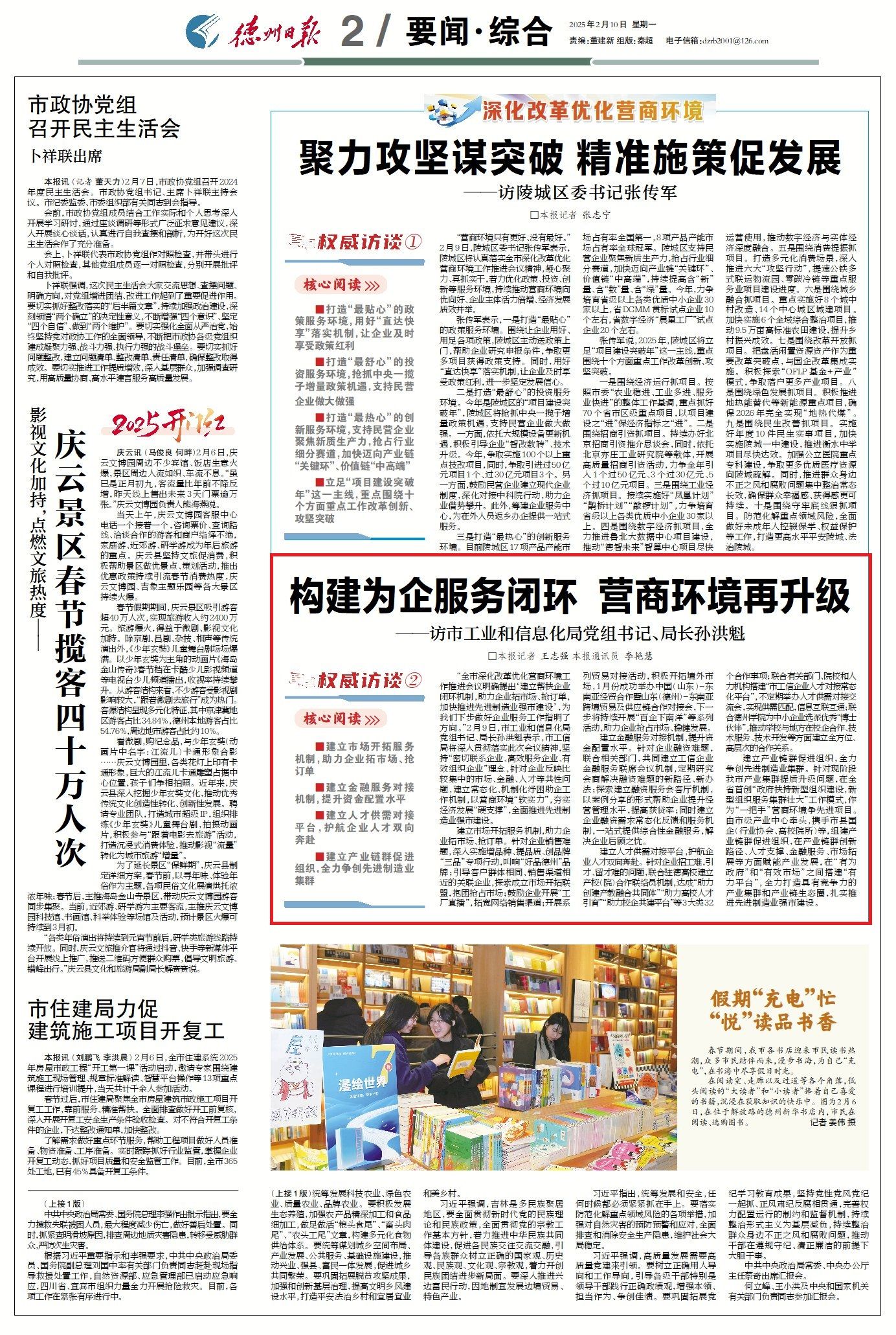 “全市深化改革优化营商环境工作推进会议明确提出‘建立帮扶企业闭环机制,助力企业拓市场、抢订单,加快推进先进制造业强市建设’,为我们下步做好企业服务工作指明了方向。”2月9日,市工业和信息化局党组书记、局长孙洪魁表示,市工信局将深入贯彻落实此次会议精神,坚持“密切联系企业、高效服务企业、有效组织企业”理念,针对企业反映比较集中的市场、金融、人才等共性问题,建立常态化、机制化纾困助企工作机制,以营商环境“软实力”,夯实经济发展“硬支撑”,全面推进先进制造业强市建设。