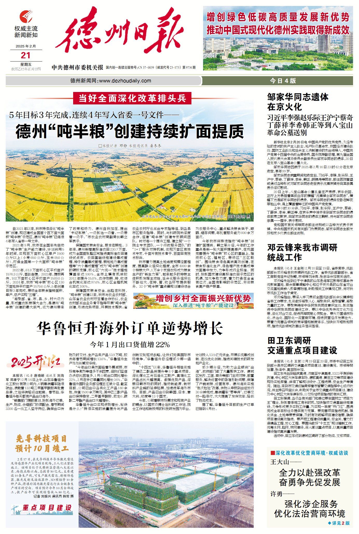 自2021年以来,我市持续深化“吨半粮”创建,现已建成全国首个百万亩大面积“吨半粮”示范区,德州“吨半粮”已连续4年写入省委一号文件。