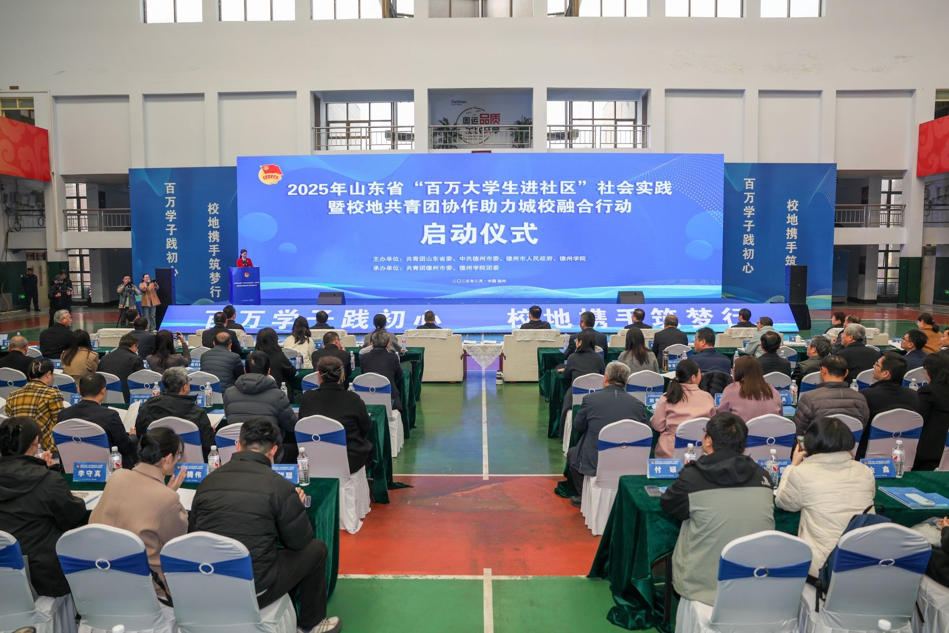 3月1日,2025年“山东省百万大学生进社区”社会实践暨校地共青团协作助力城校融合行动在德州启动。团省委副书记盛夏、德州学院党委书记吴君、副市长陈晓强出席活动并致辞。