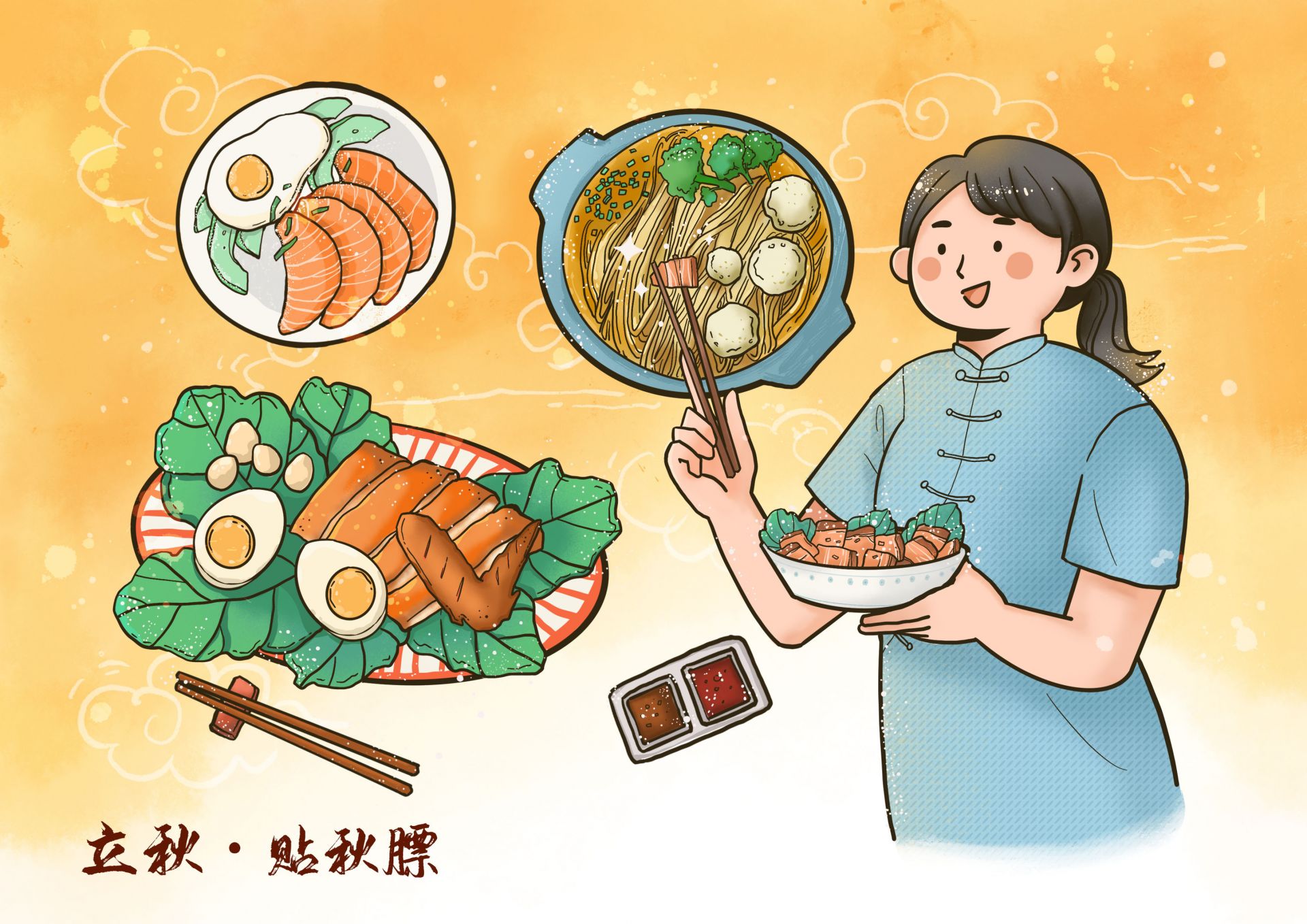 民间流行在立秋这天以悬秤称人,将体重与立夏时对比来检验肥瘦,体重减轻叫“苦夏”。那时人们对健康的评判,往往只以胖瘦做标准。瘦了当然需要“补”,补的办法就是“贴秋膘”。