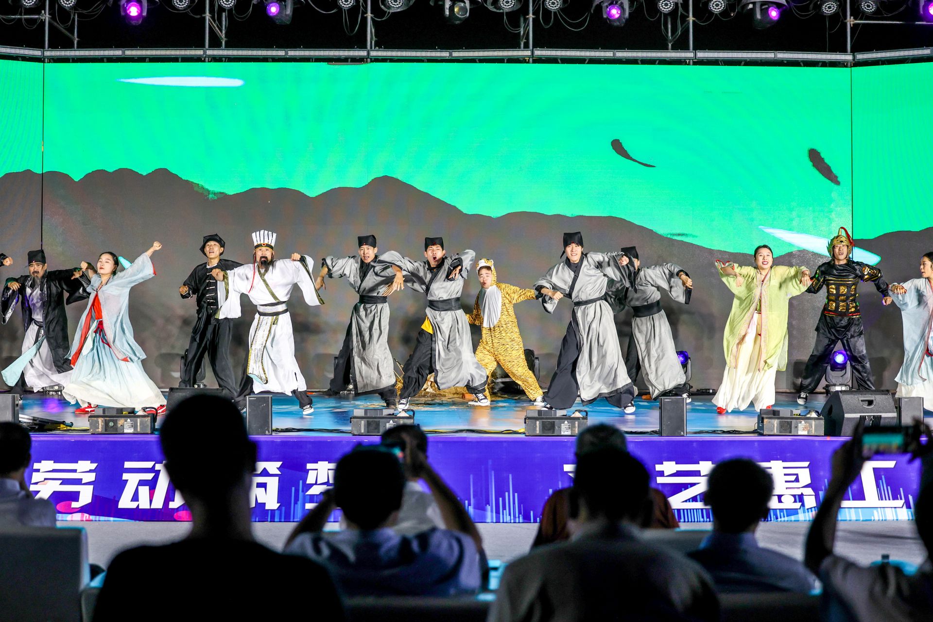 活动现场,《说山东》街舞开场活力满满,瞬间点燃气氛,也宣告美酒美食品鉴消费文化周正式启动。展演节目形式多样、精彩纷呈:《灯火里的中国》《开缸酒》《酒歌》等歌曲,或描绘祖国盛景,或展现酒文化韵味;《海阔天空》《不再犹豫》引发全场大合唱,唤起青春记忆;《街舞少年》《舞所不能》尽显街舞魅力,《百年》则深情回顾党的历程。