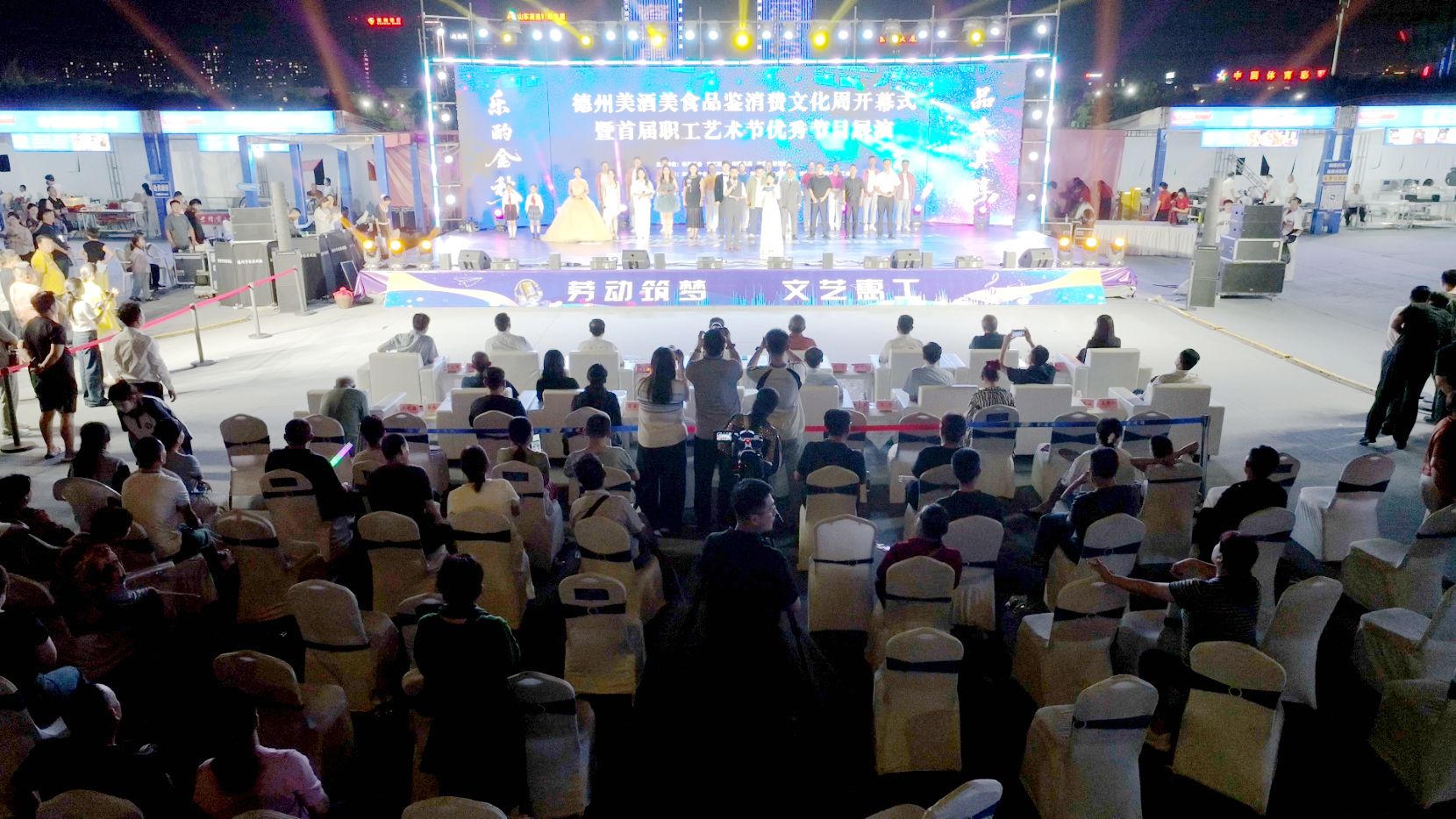 9月9日晚,德州美酒美食品鉴消费文化周暨首届职工艺术节优秀节目展演在德州体育公园南广场启幕。