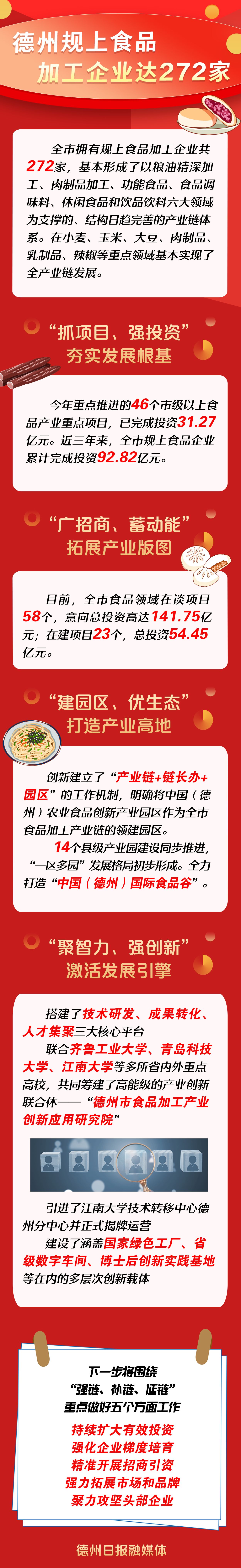 一图读懂 | 德州规上食品加工企业达272家 形成六大领域为支撑产业链体系