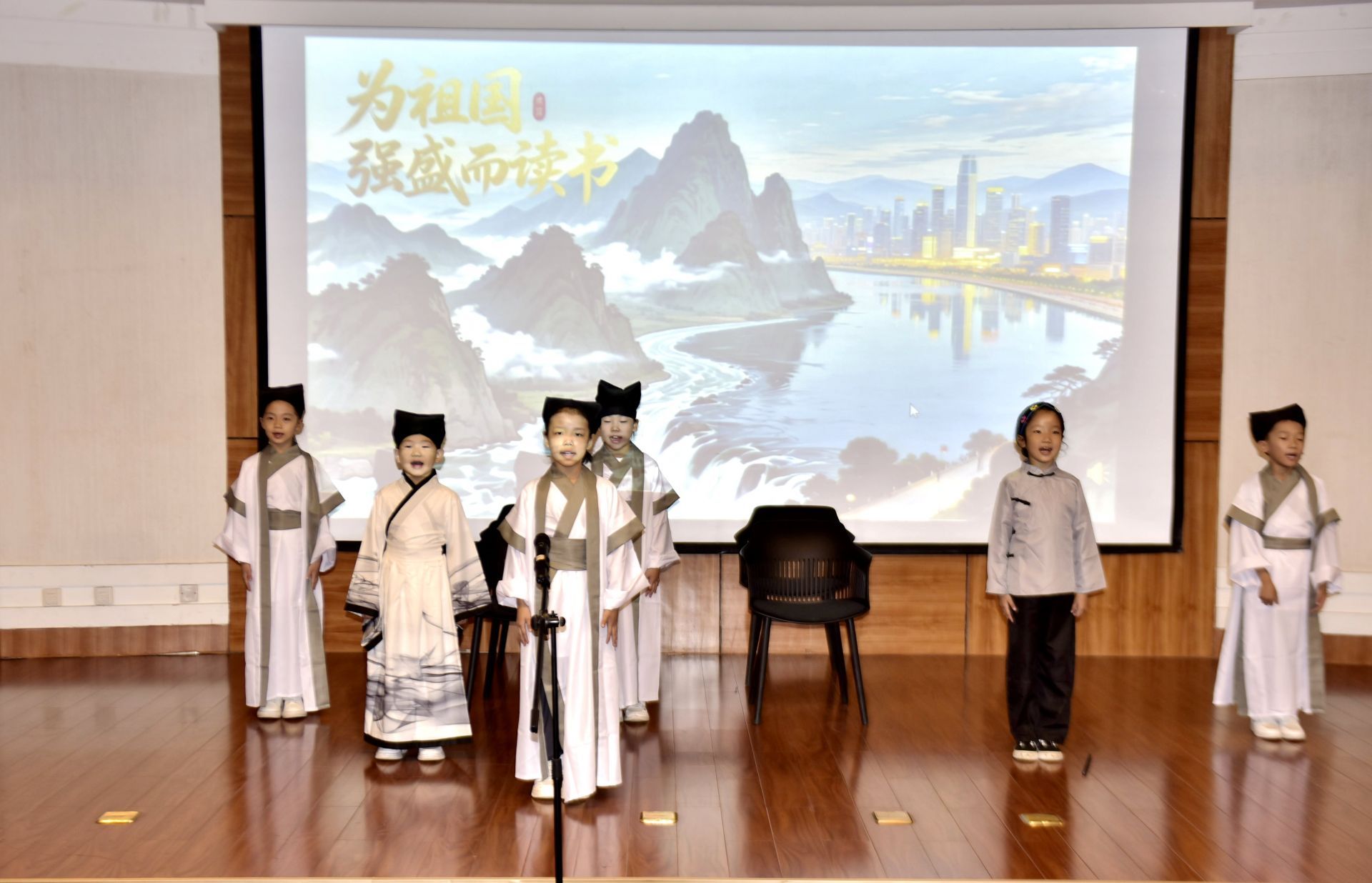 在“小名士领读员”展示环节,选手们在三分钟内完成个人介绍、诵读经历分享及现场领读,并通过笔试接受国学素养综合考察,最终有十名优秀领读员脱颖而出。