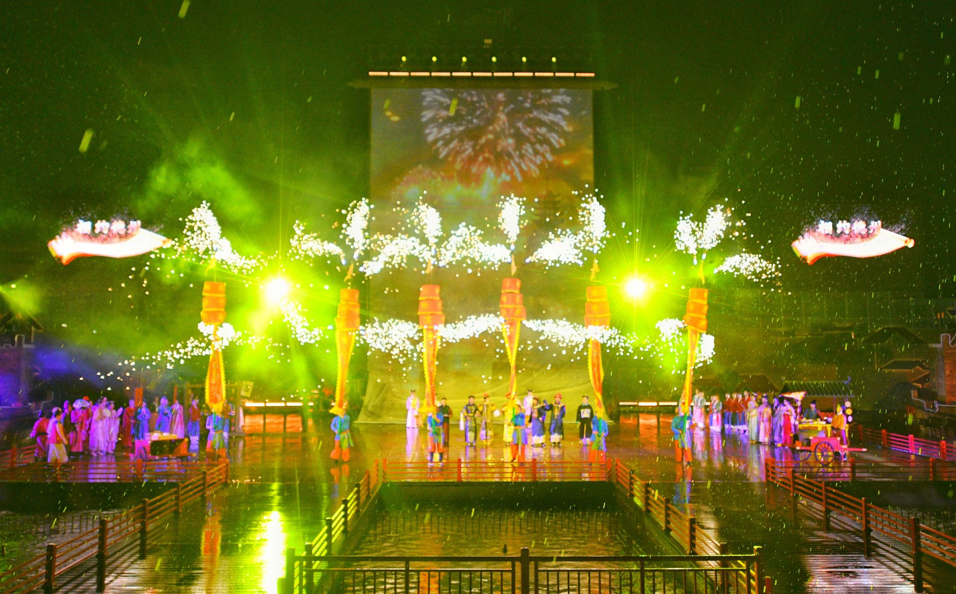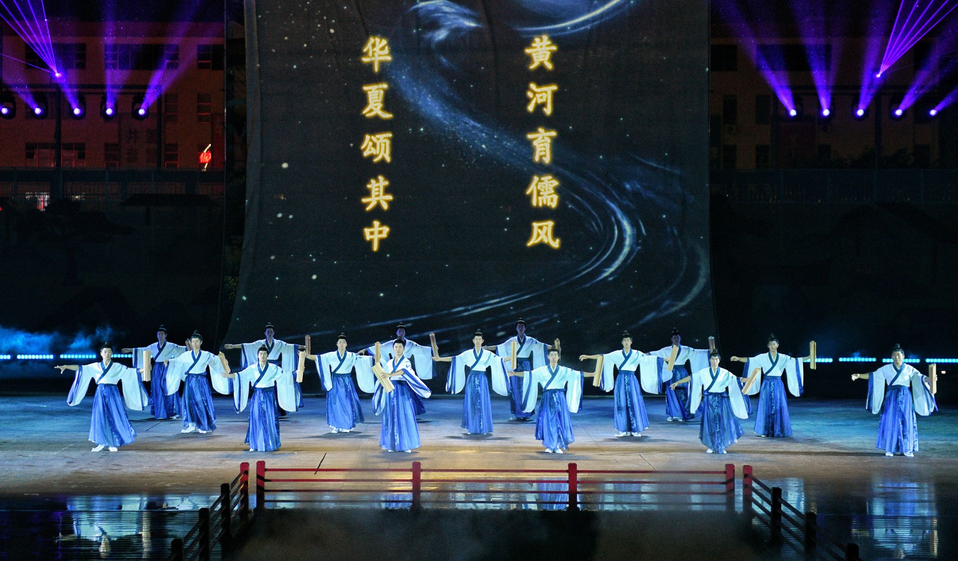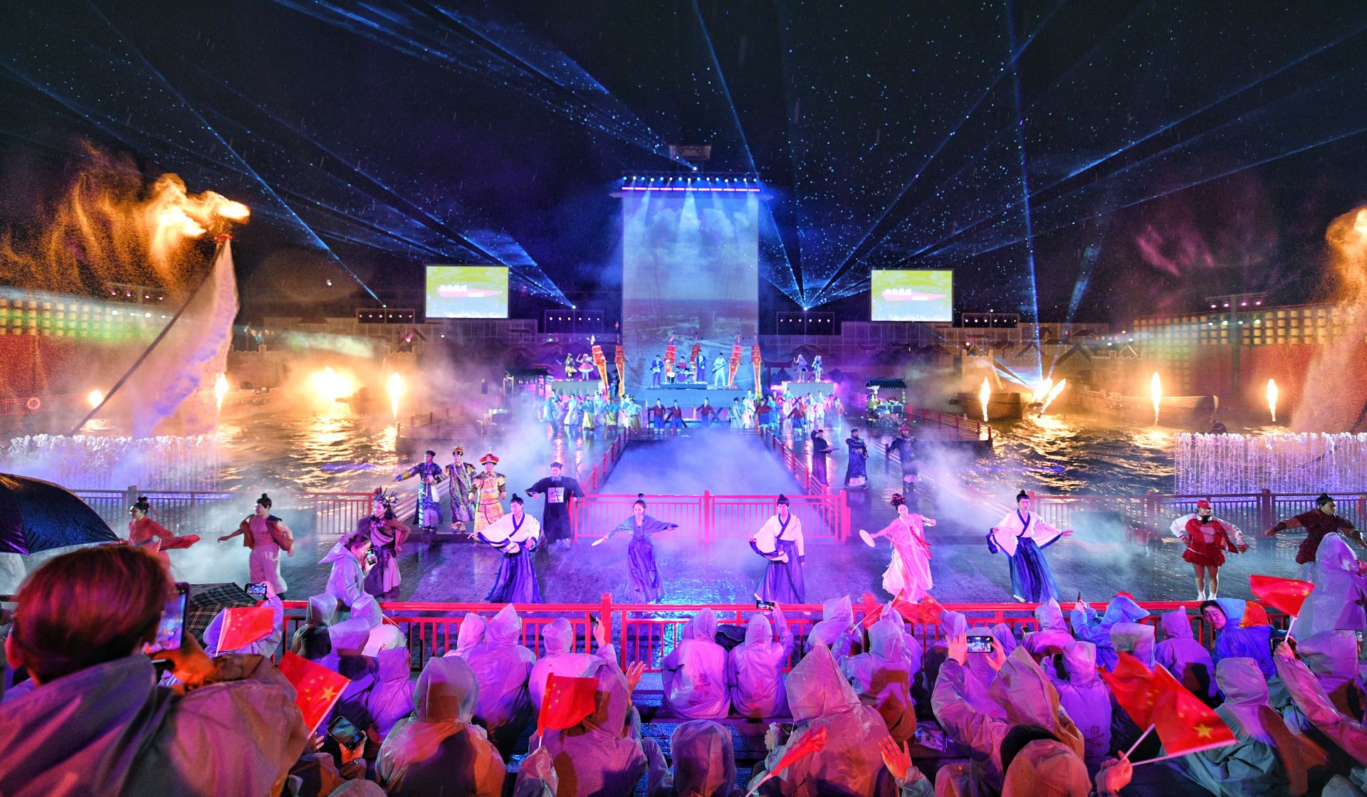 仪式结束后,与会嘉宾共同欣赏了《德运星河》的首场演出。该剧以沉浸式体验打破传统舞台界限,通过舞蹈、杂技等艺术形式,生动演绎了从“羿射九日”的神话传说到“大禹治水”的开拓故事,从“运河舟楫”的商贸繁华到“乾隆南巡”的盛世气象,为观众呈现了一场跨越时空的视听盛宴。
