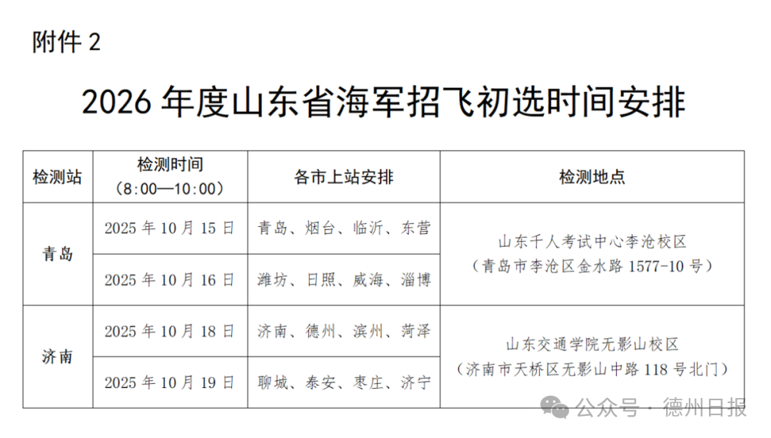 2.2026年度山东省海军招飞初选时间安排