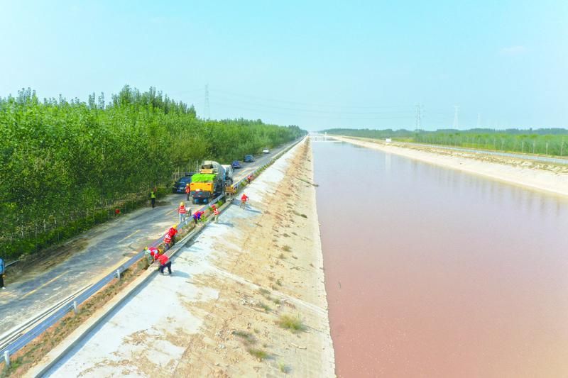 德州市潘庄灌区运行维护中心齐河管理所所长边建介绍,当前潘庄总干渠已进入秋季引水阶段,为保障上下游安全供水,施工人员采取带水作业方式,每日统筹部署7组专业施工班组,每组标配2套专业施工设备,确保工程进度与供水任务双达标。