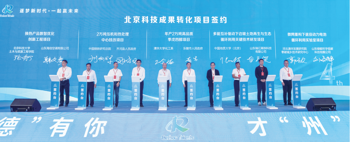 我市积极搭建平台,吸引高科技人才和优质产业项目。2025年,举办中国·德州高层次人才创新创业大赛北京分赛、京德科技人才对接恳谈会,征集“清华大学超低能耗光储建筑技术”等25个人才项目;机制化举办“央企德州行”“京德直通车”等系列活动。在2025年9月27日举行的京德科技人才合作交流大会上,市政府与北京大学创新创业学院、省科创集团签署协议,揭牌成立“中关村e谷(德州)科技成果转化基地”,300余名北京高层次人才与会对接合作,10个项目现场签约。