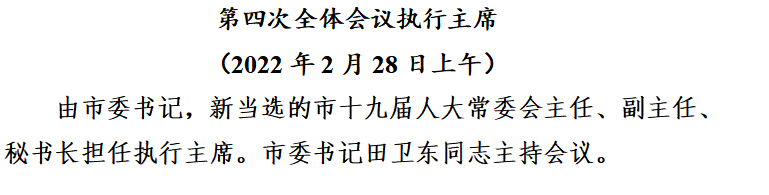 权威发布 | 德州市十九届人大一次会议执行主席名单 2022-02-24 18:35 德州日报 0 德州市第十九届人民代表大会 第一次会议执行主席名单 (2022年2月24日德州市第十九届人民代表大会 第一次会议主席团第一次会议通过) 德州日报新媒体出品编辑|张晓航审核|张晓航 终审|朱代军