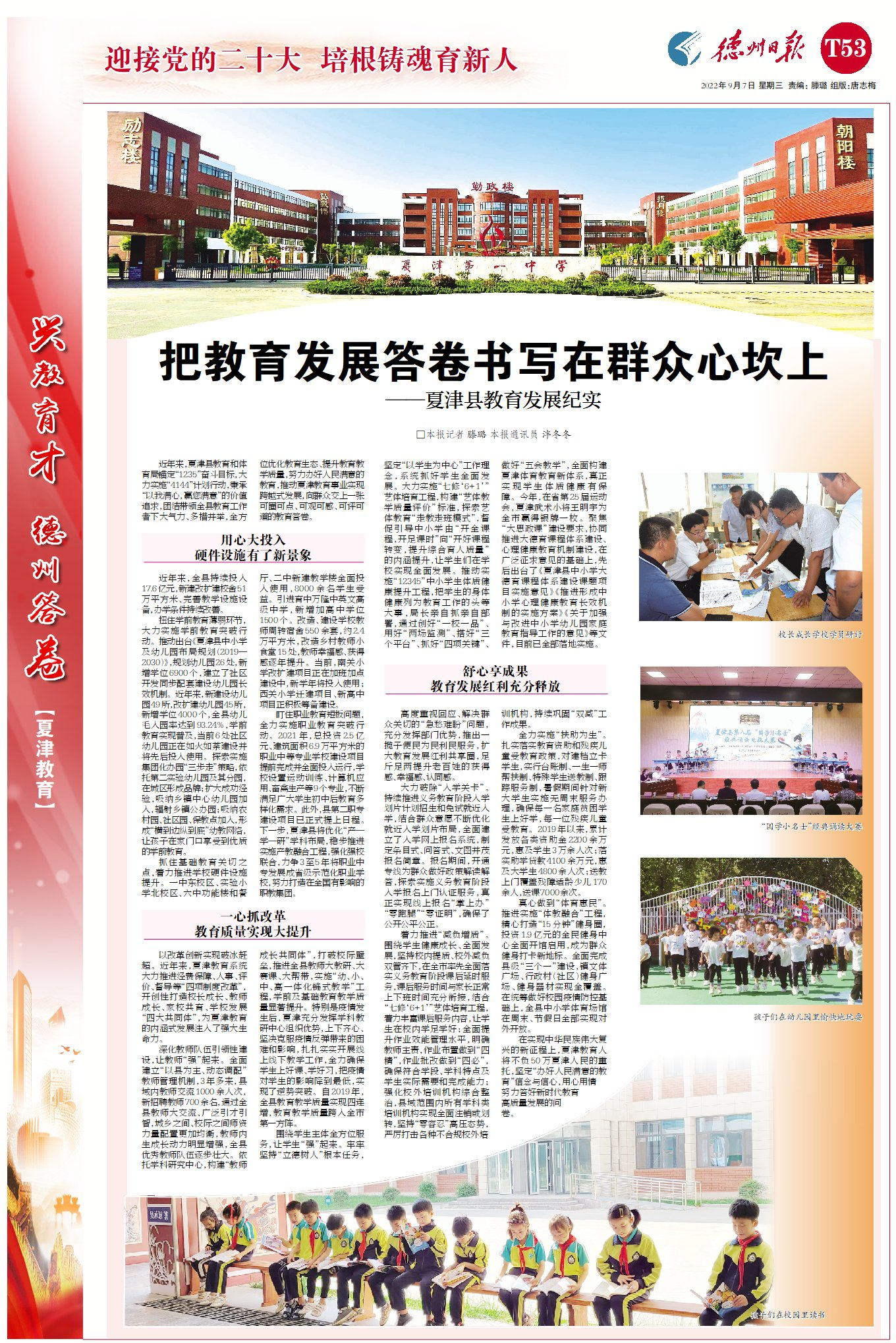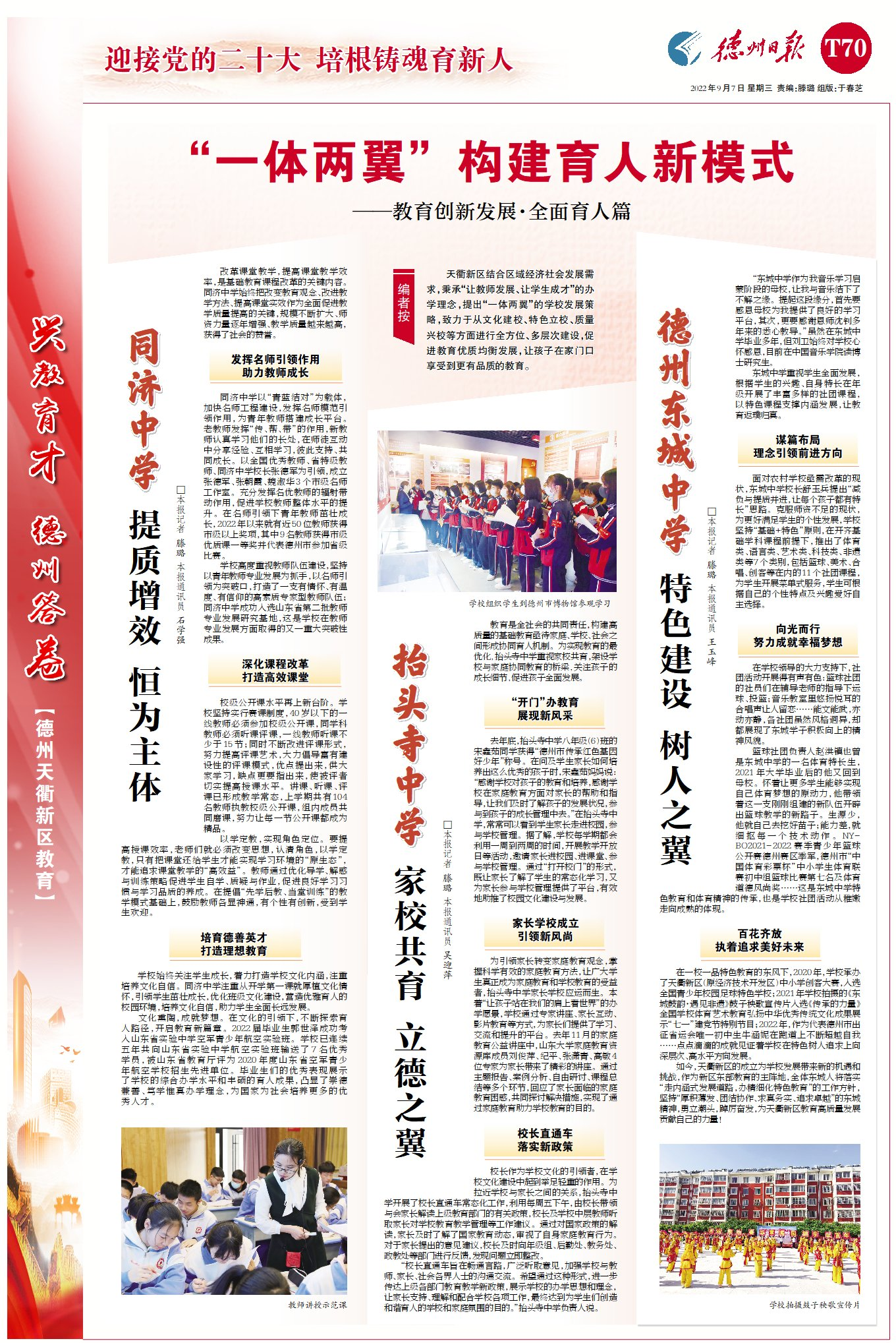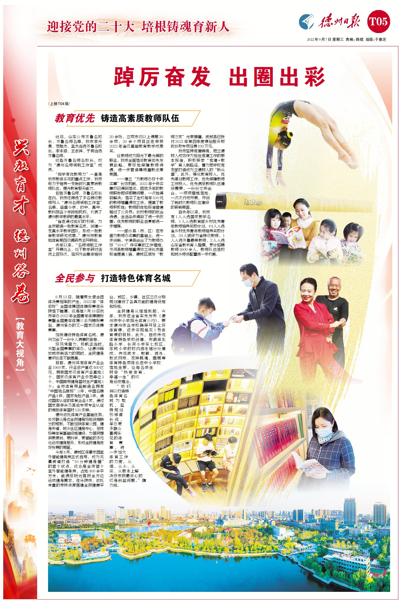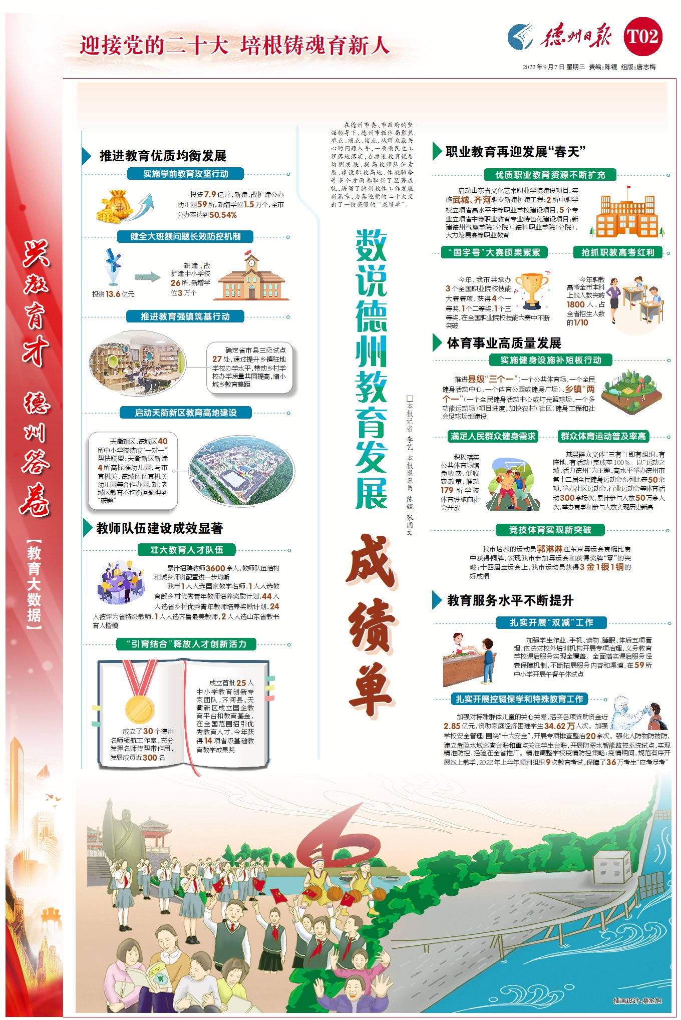 特刊记录我市教育系统推进教育优质均衡发展、提高教师队伍素质、建设职教高地、体教融合等多方面取得的成绩。书写了德州教体工作发展的新篇章,为喜迎党的二十大献上一份亮眼的“成绩单”。