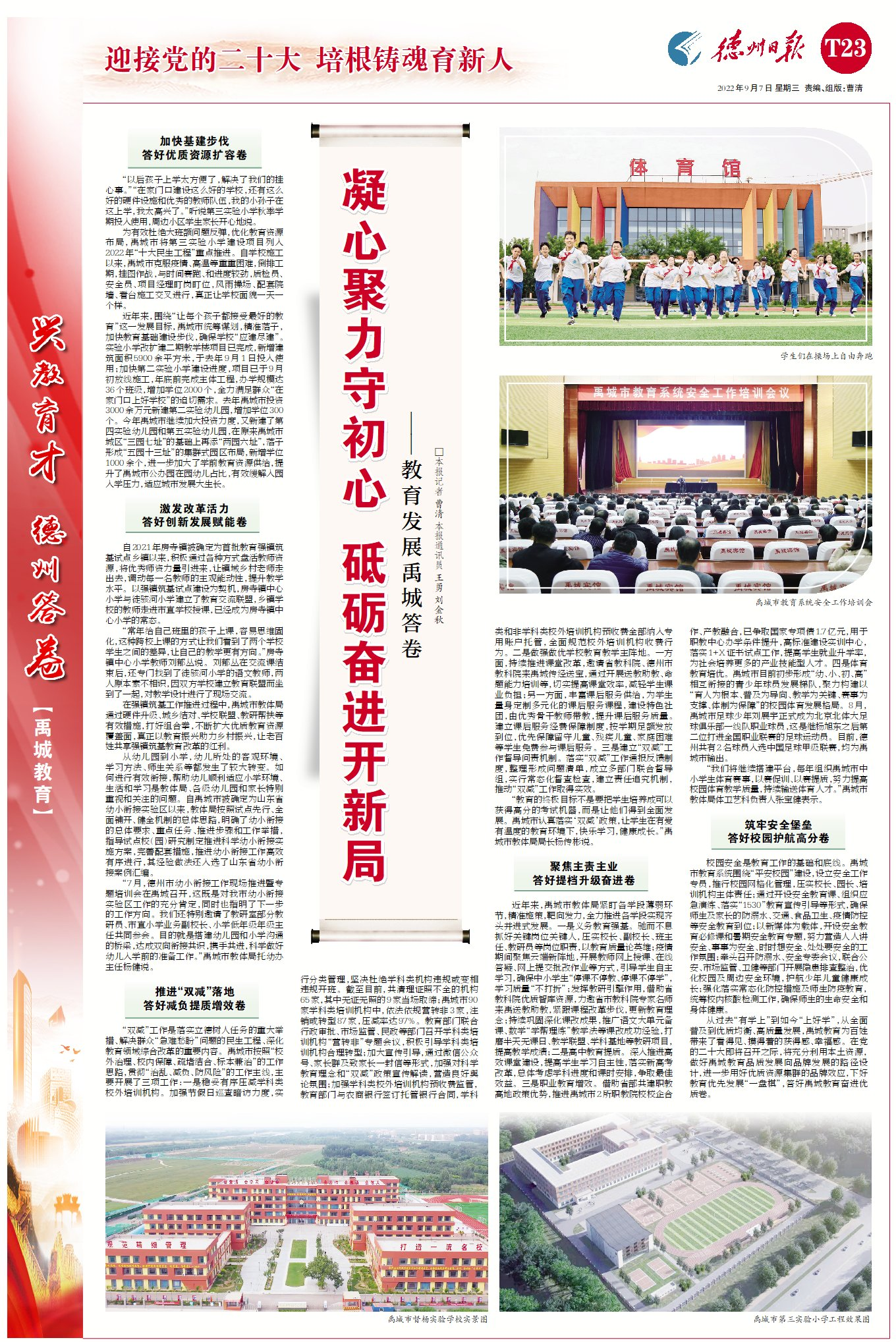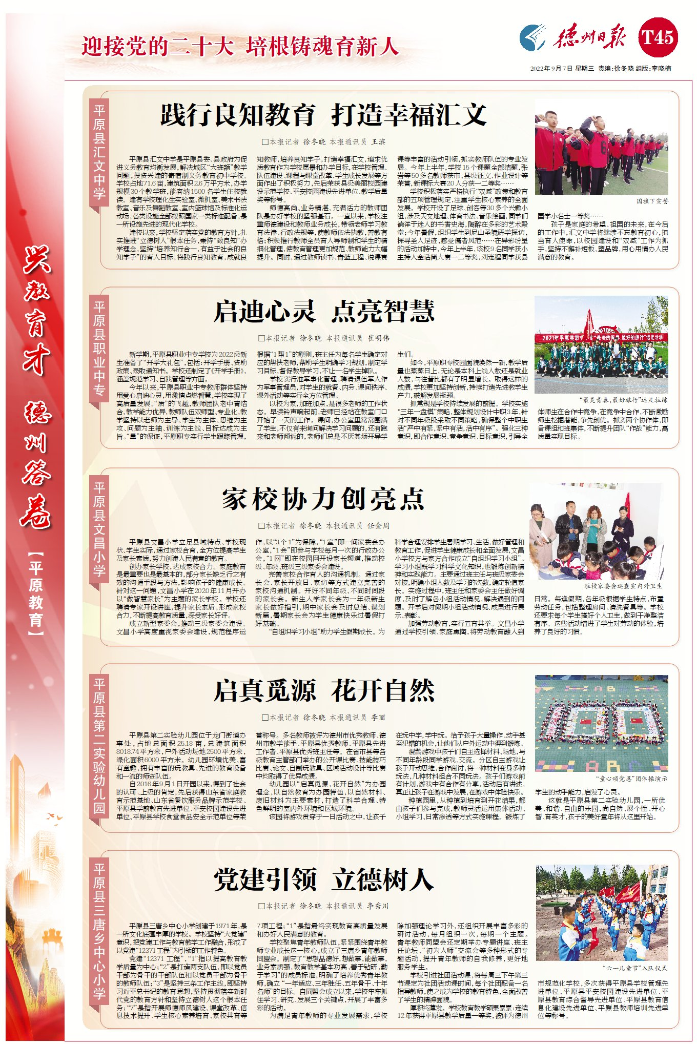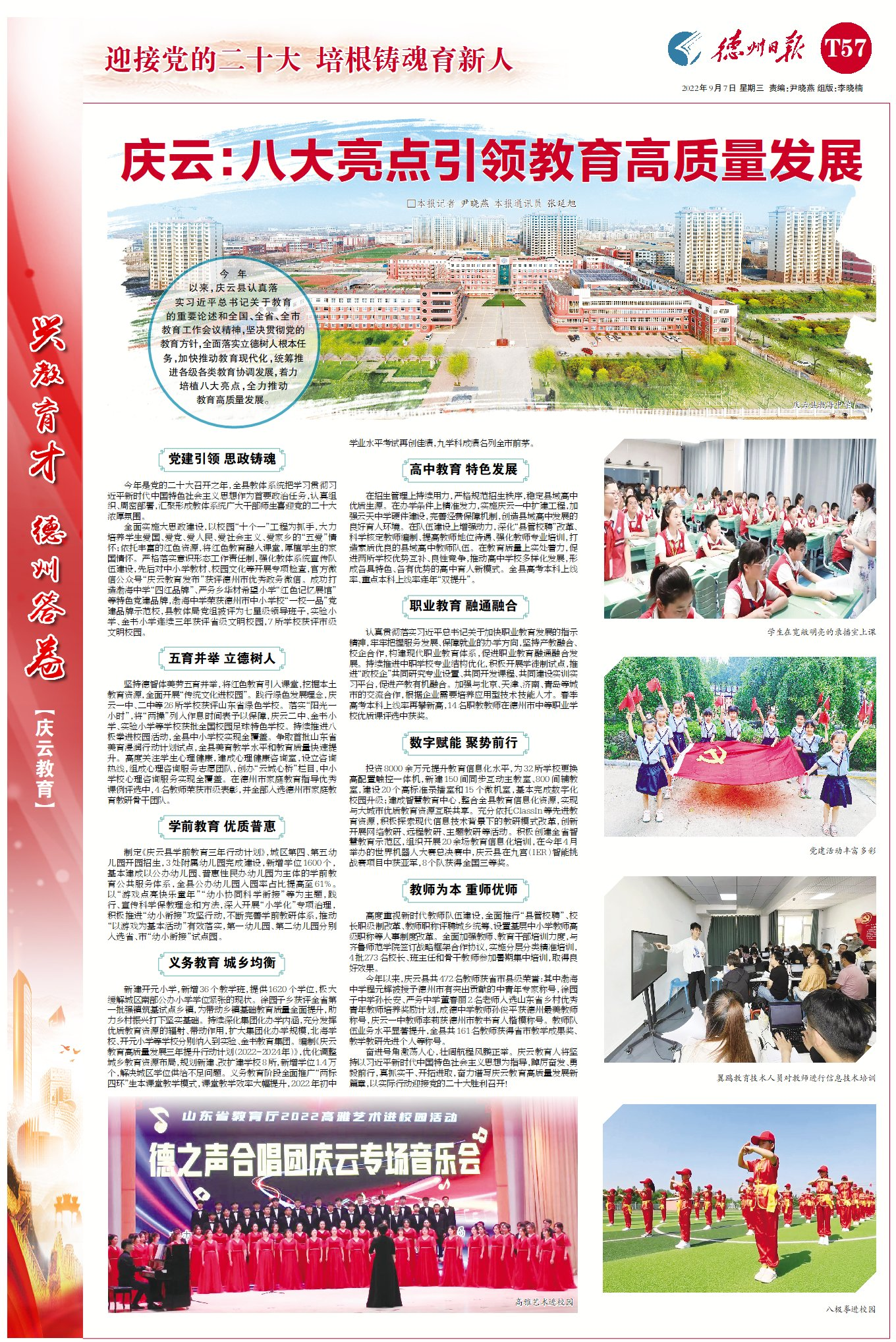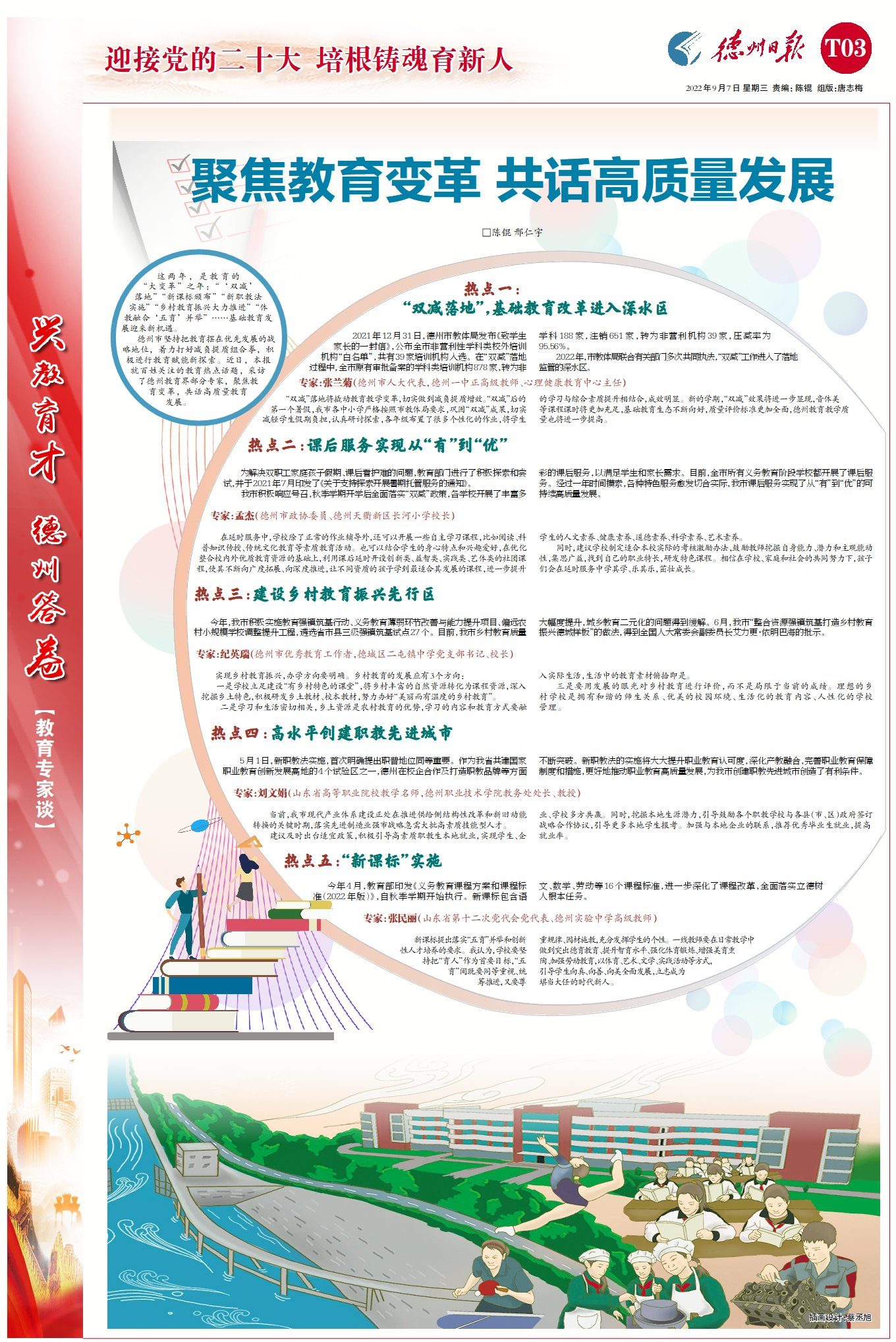 特刊记录我市教育系统推进教育优质均衡发展、提高教师队伍素质、建设职教高地、体教融合等多方面取得的成绩。书写了德州教体工作发展的新篇章,为喜迎党的二十大献上一份亮眼的“成绩单”。