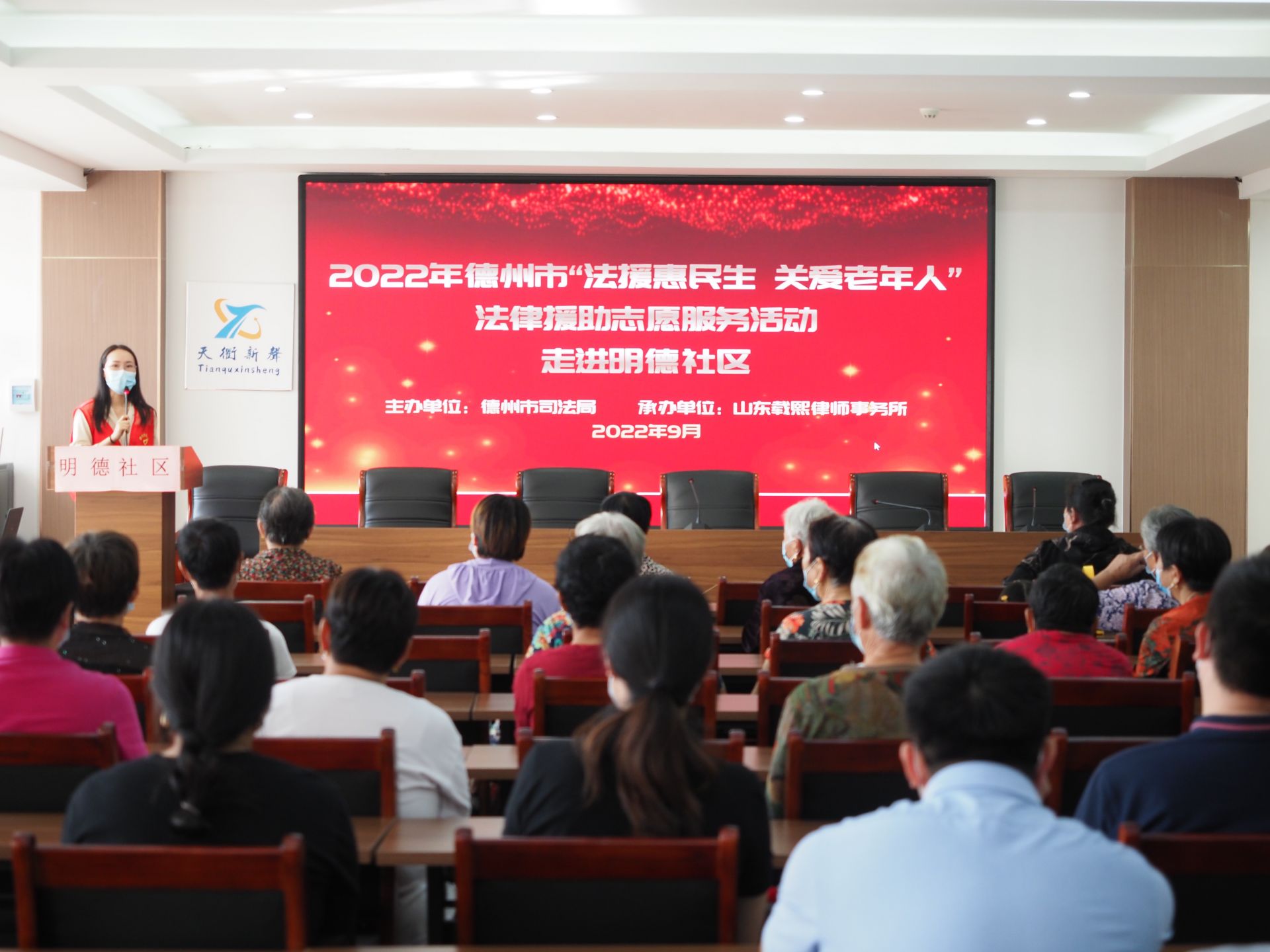 2022年9月19日上午,德州市司法局“法援惠民生关爱老年人”法律援助志愿服务活动走进明德社区。