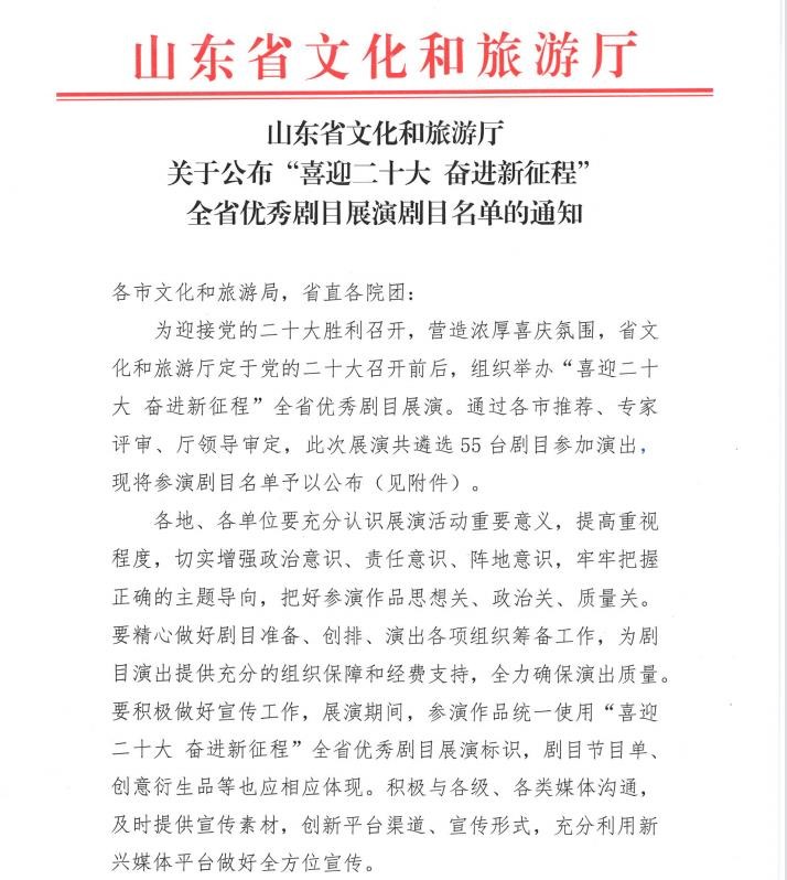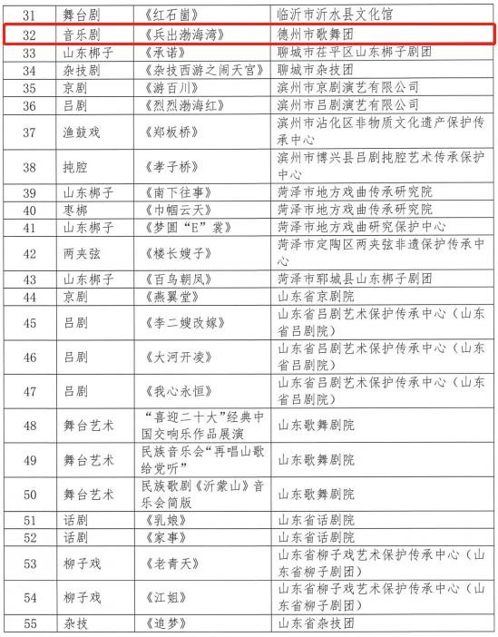 近日,山东省文化和旅游厅公布了“喜迎二十大 奋进新征程”全省优秀剧目展演剧目名单,共55台剧目参加演出,其中,德州大型原创音乐剧《兵出渤海湾》入选。