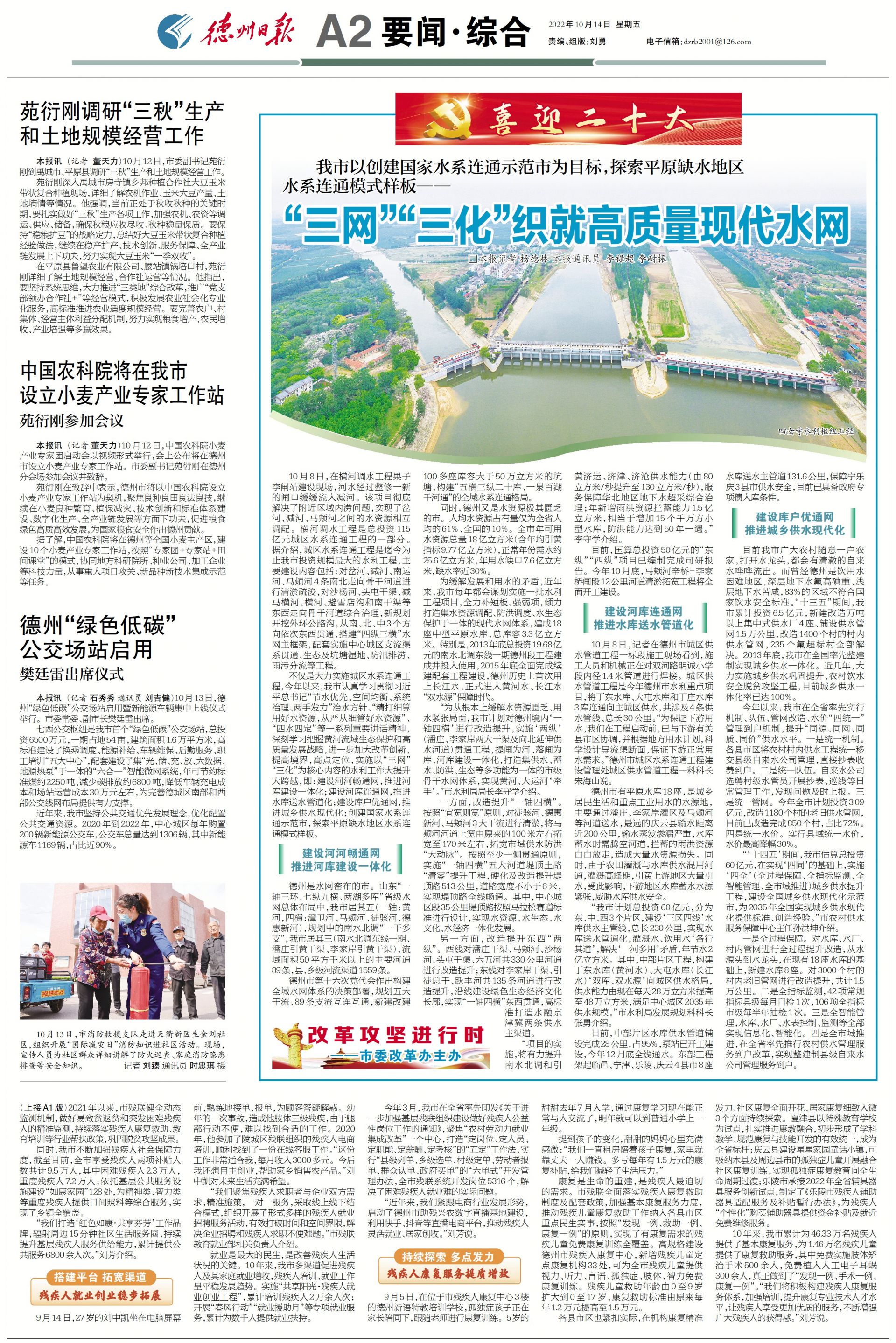 德州市第十六次党代会作出构建全域水网体系的决策部署,规划五大干流、89条支流互连互通,新建改建100多座库容大于50万立方米的坑塘,构建“五横三纵二十库、一泉百湖千河通”的全域水系连通格局。