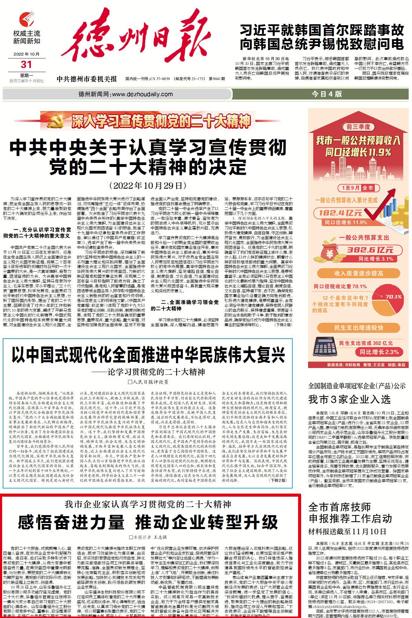 山东福洋生物科技股份有限公司不仅组织员工集体收看党的二十大开幕会盛况,还采取谈体会、写心得等形式,话当下、谈未来,认真学习领会党的二十大精神。该公司董事长张雷达表示,党的二十大报告鼓舞士气,振奋人心。尤其是报告中“优化民营企业发展环境,依法保护民营企业产权和企业家权益,促进民营经济发展壮大”等内容让他信心满满。“作为一家专注玉米精深加工的企业,我们要深刻学习、理解和贯彻党的二十大精神,利用上海‘人才飞地’,开展联合创新,通过科技人才支撑和科研驱动,不断塑造发展新动能、新优势。” 张雷达说。