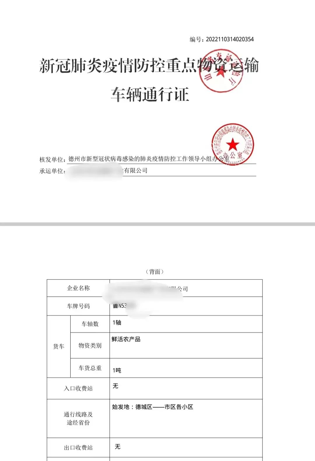 市外车辆凭德州市疫情防控指挥部《疫情防控重点物资运输车辆通行证》,市内车辆凭《德城区疫情防控生活物资应急保供车辆通行证》,运输蔬菜等生活物资即可正常通行。