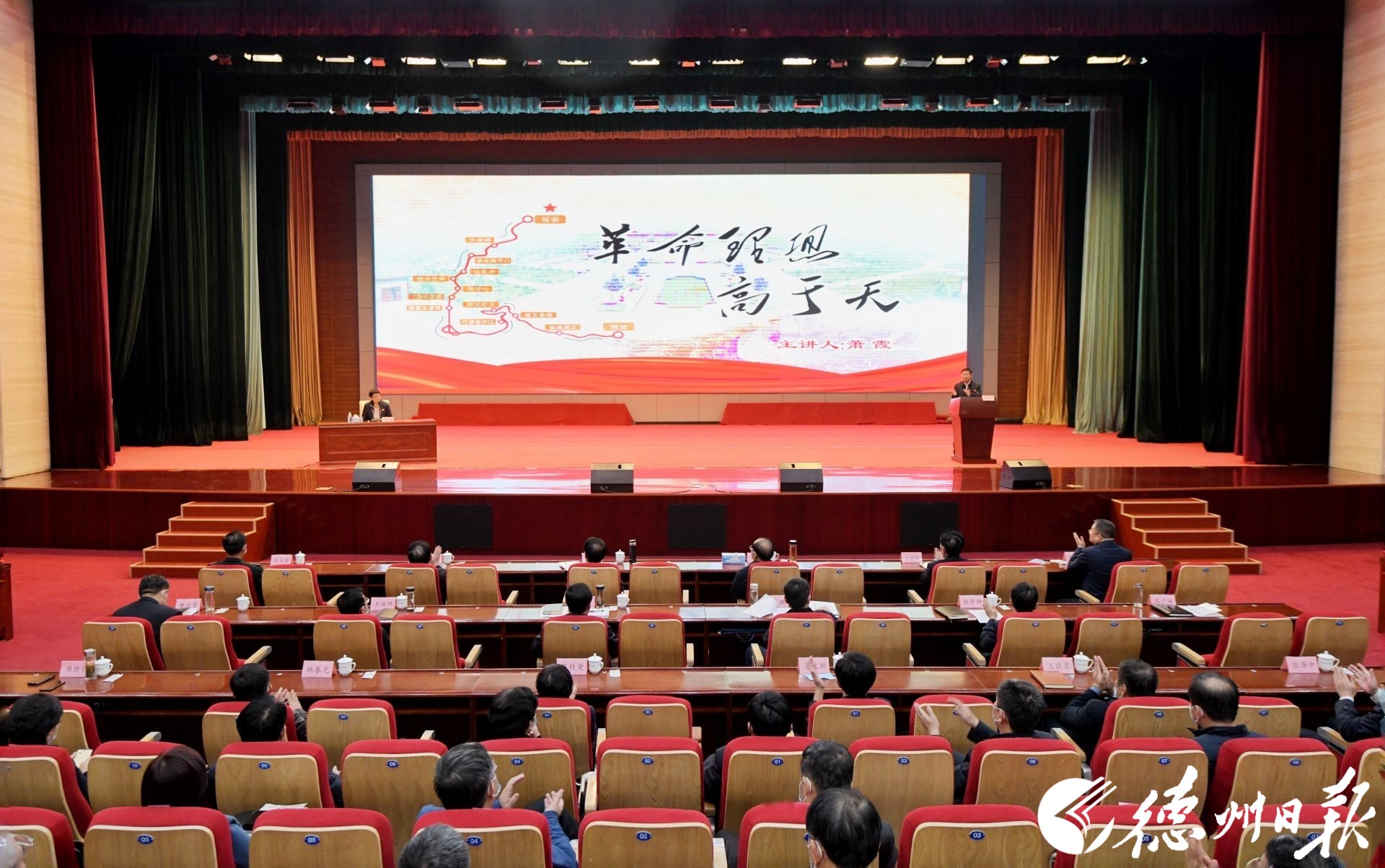 11月16日,2022年德州市领导干部党史专题辅导报告会举行,邀请开国上将萧华将军之女萧霞作专题辅导报告。市委书记田卫东,市委副书记、市长朱开国,市政协主席卜祥联等市级领导出席。市委常委、组织部部长马广峰主持。