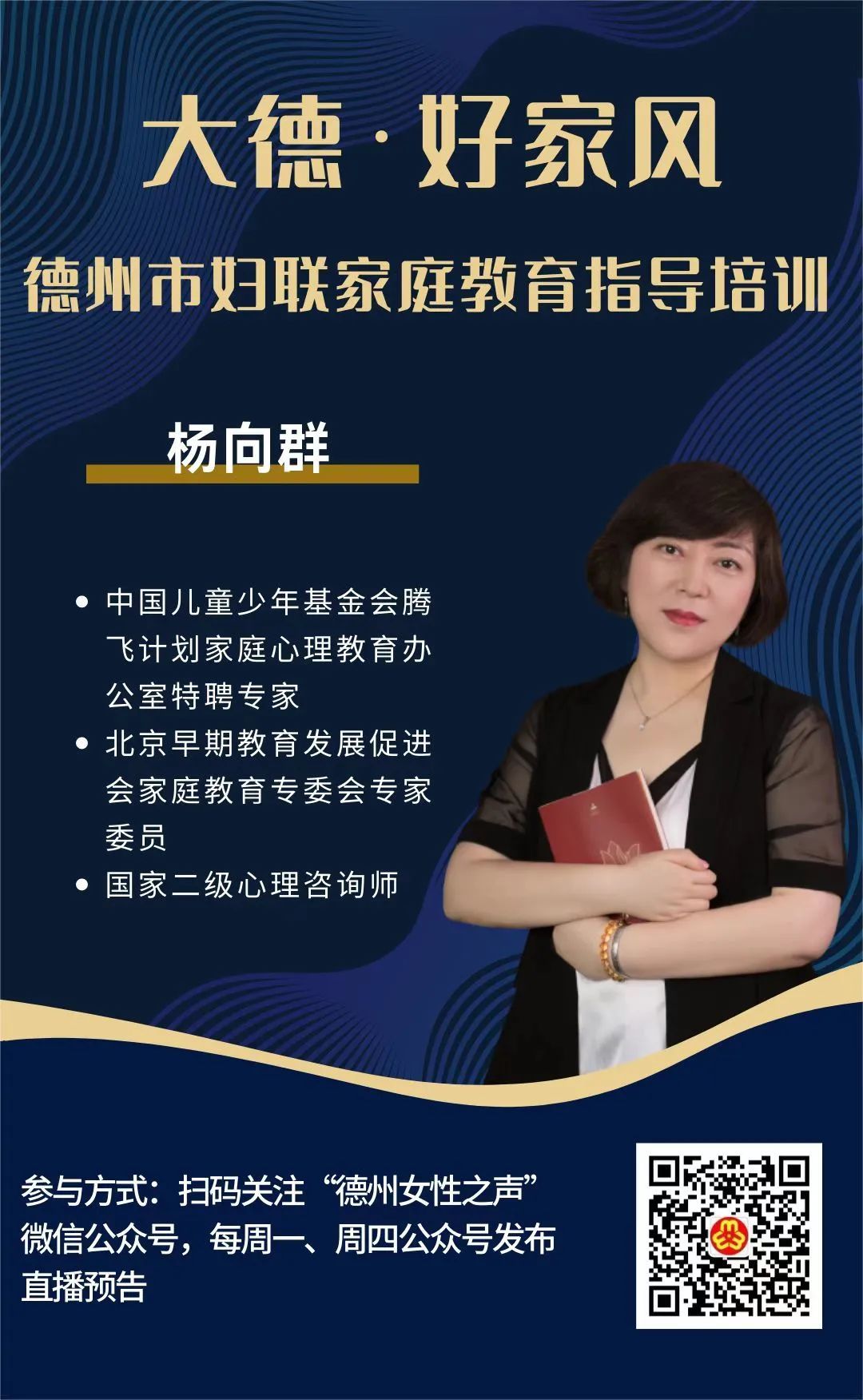 还想收听收看第一节课的小伙伴们,也可以扫码关注德州女性之声微信公众号,找到第一期直播预告,扫码收看哦~
