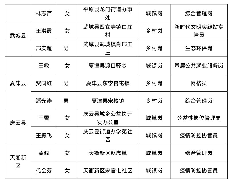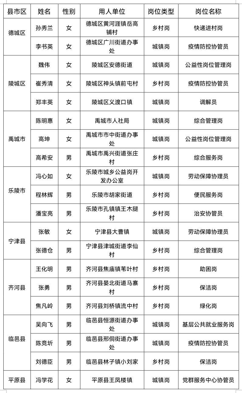 为展示德州市城乡公益性岗位人员良好形象,鼓励广大城乡公益性岗位人员积极奋进,全面提升我市城乡公益性岗位工作人员工作水平,按照《关于加强全市城乡公益性岗位典型选树工作的通知》要求,经各县市区人社部门推荐、市人力资源和社会保障局复评,我市共有30人被评为德州市“最美公岗”。