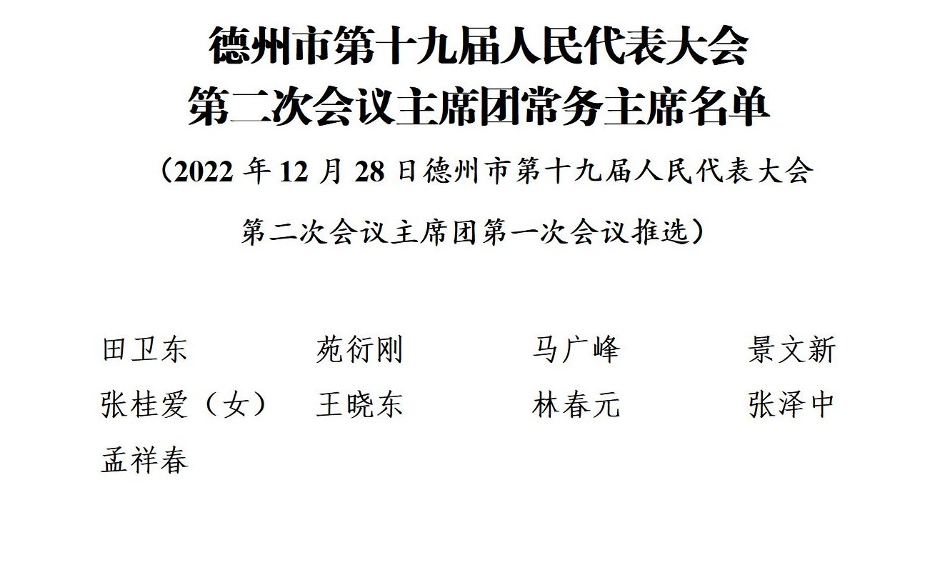 德州市第十九届人民代表大会第二次会议主席团常务主席名单