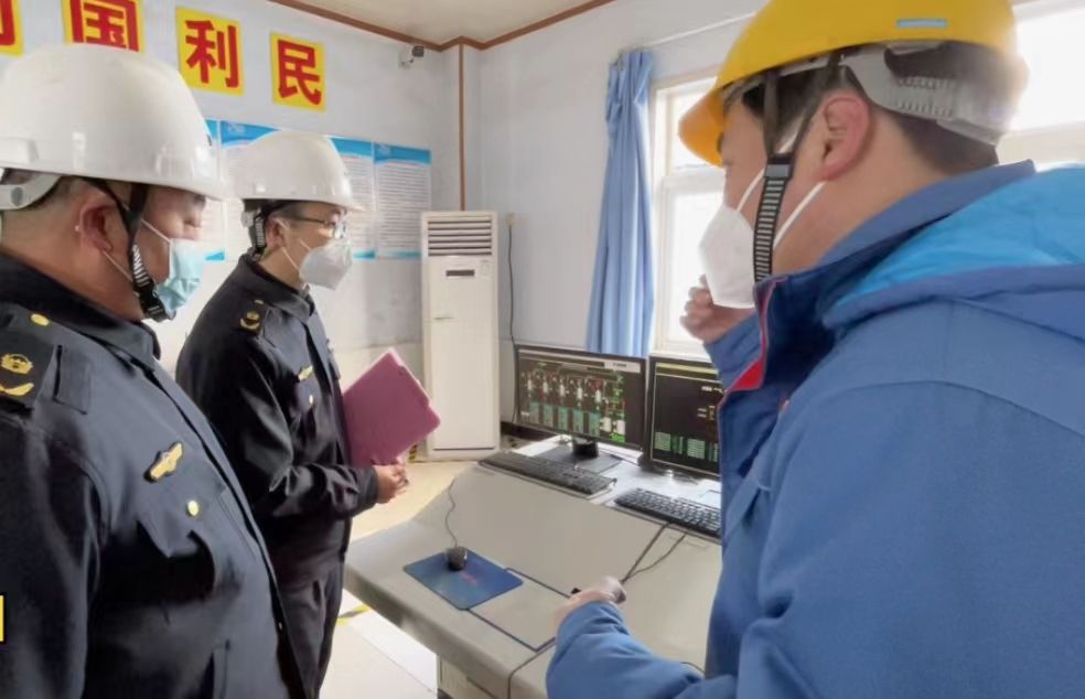 在德州欧莱恩永兴碳素有限公司中控室,几名员工正在电脑前进行着监测工作,苑铮走到大屏幕前仔细记录着企业实时的污染物排放指标、历史排放数据和设施运行记录,询问企业负责人二氧化硫、氮氧化物等污染物收集处理效率、应急减排措施是否得到落实。
