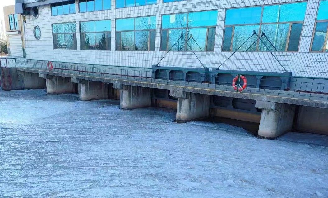 因本次上游来水流量较小且变化频繁,丁东水库运行人员连日来根据实际情况适时调节提水量,确保入库机组全力运行。1月23日(大年初二),我市因气温骤降导致引水河道出现浮冰,入库泵站引水口产生冰坝阻水现象,严重威胁水泵正常运行。为积极应对冰坝阻水险情,水库运行人员及时研判、立即启动应急预案,在室外低温大寒环境中,紧急采取机械破冰清除,同时提高了昼夜巡检频次,全力消除安全隐患。