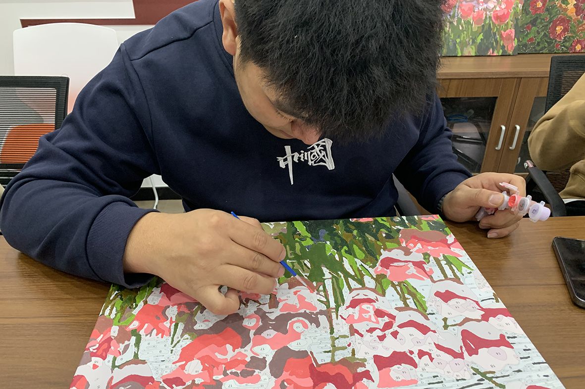 活动前,社区工作人员将准备好的数字油画材料发放给参与居民,并详细讲解了上色技巧和注意事项。数字油画通过特殊工艺,将画作加工成线条和数字符号,绘画者只需在标有号码的填色区内填上对应颜色即可。绘制过程中,工作人员根据每个人的画面效果,随时提醒大家要把握好落笔的力度及色彩填充的技巧,经过大家的努力,一幅幅色彩鲜艳的作品陆续完成。