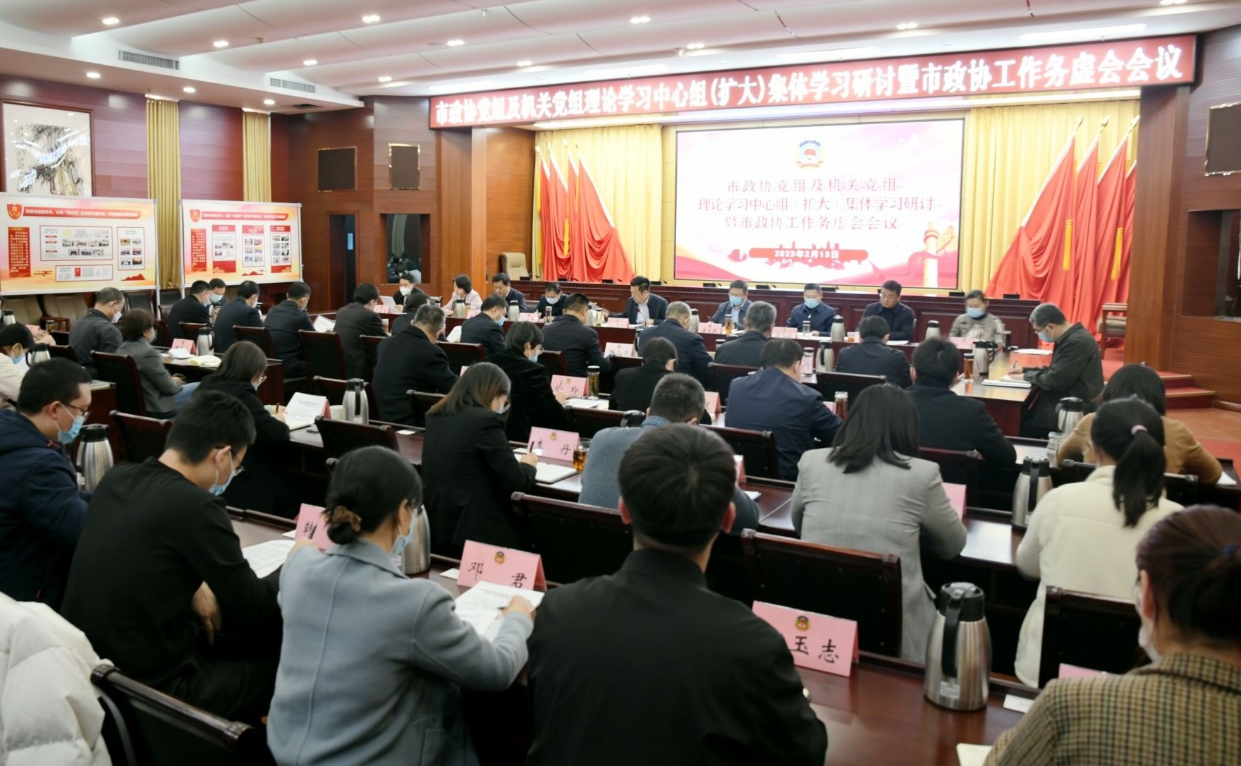 2月13日,德州市政协党组理论学习中心组集体学习研讨暨市政协务虚会召开,传达学习习近平总书记在学习贯彻党的二十大精神研讨班开班式上的重要讲话精神,研究谋划2023年政协工作高质量发展。市政协党组书记、主席卜祥联主持并讲话,副主席康志民、吕永忠、辛志才、才玉璞、齐永军、隋力、张苹,秘书长刘宝良参加。