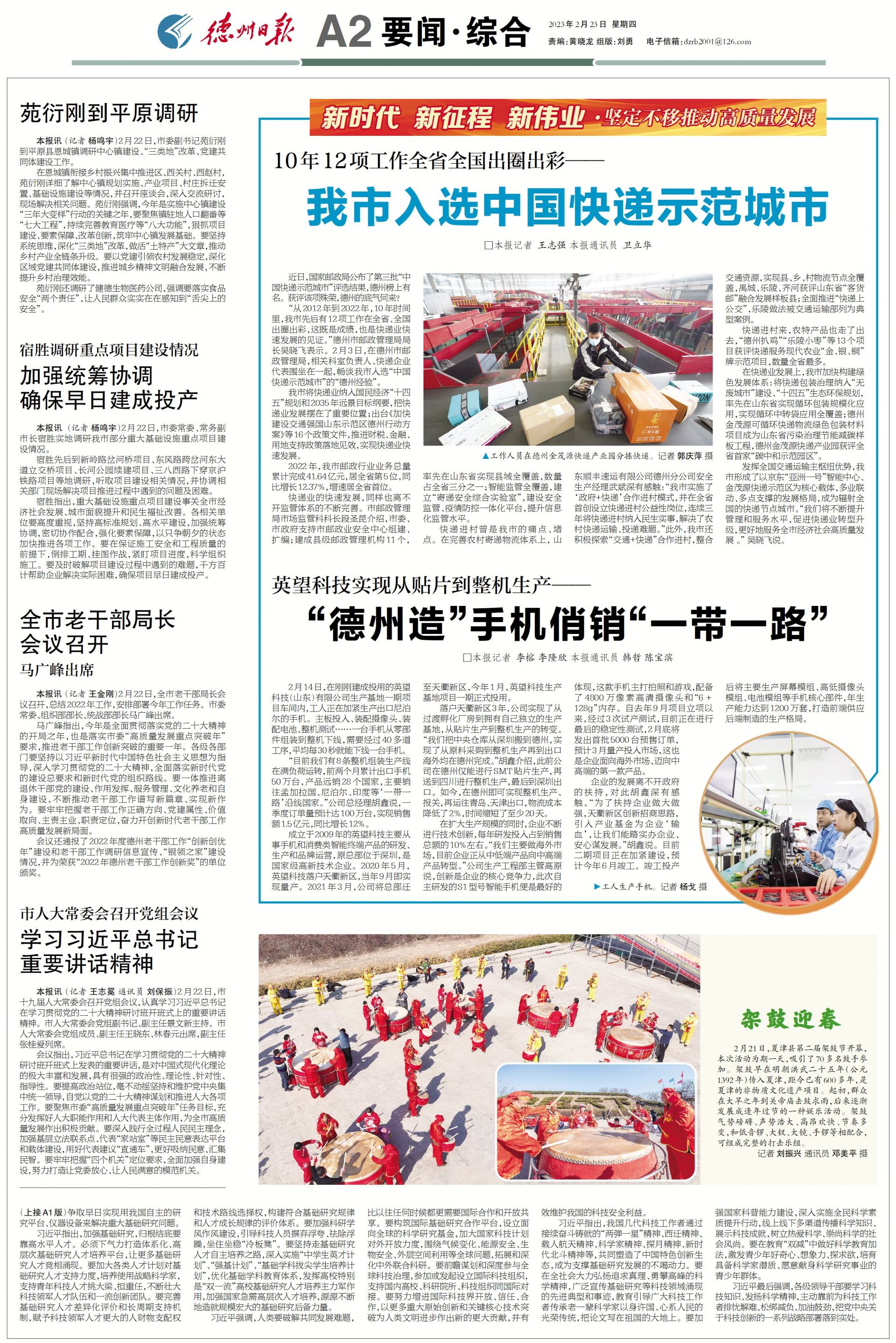 “从2012年到2022年,10年时间里,我市先后有12项工作在全省、全国出圈出彩,这既是成绩,也是快递业快速发展的见证。”德州市邮政管理局局长吴晓飞表示。2月3日,在德州市邮政管理局,相关科室负责人、快递企业代表围坐在一起,畅谈我市入选“中国快递示范城市”的“德州经验”。
