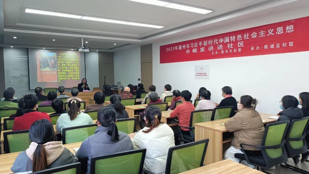 为进一步引导妇女群众领悟习近平新时代中国特色社会主义思想的思想力量和实践伟力,以学好用好《习近平走进百姓家》助推建设好家庭、涵养好家教、传承好家风,2月23日,由德州市妇联主办、陵城区妇联承办的2023年德州市习近平新时代中国特色社会主义思想巾帼宣讲进社区活动在陵城区安德街道紫云社区开展,巾帼宣讲员、德州市委党校教授许兰菊作宣讲,30余名社区妇女和家庭代表参加。