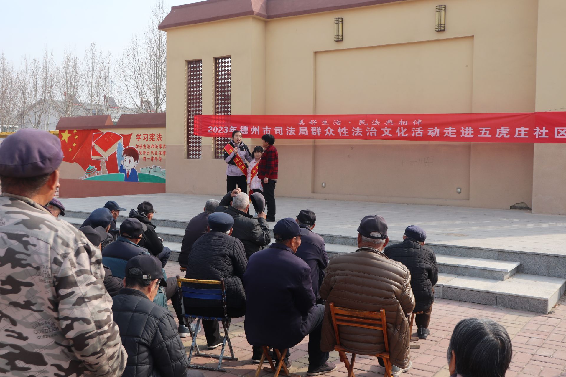 2023年3月4日上午,德州市司法局组织开展“‘美好生活·民法典相伴’——2023年群众性法治文化活动走进五虎庄社区”活动,50多名社区群众参加。