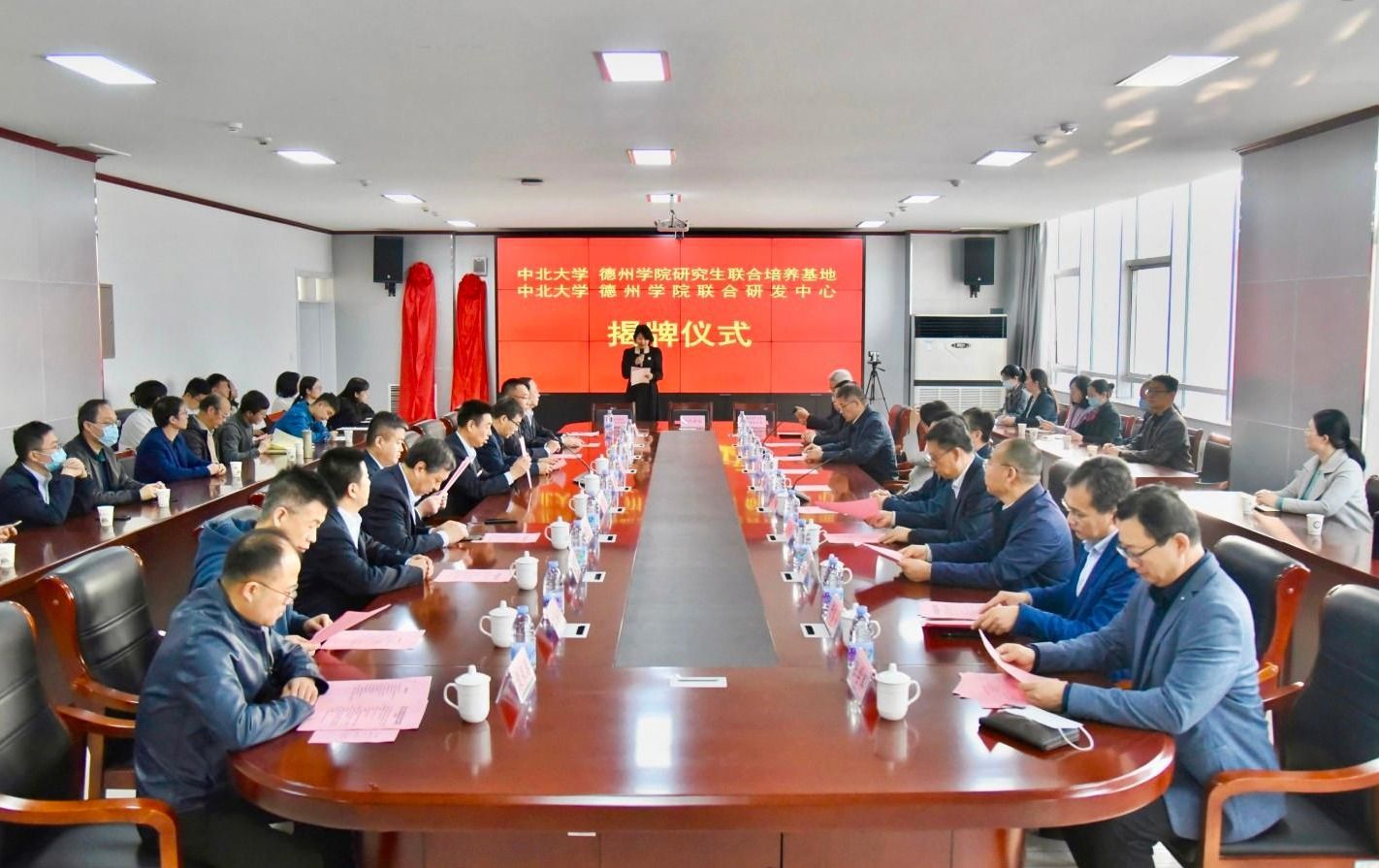 3月7日,中北大学—德州学院研究生联合培养基地、中北大学—德州学院联合研发中心在德州市职业教育发展中心揭牌成立。揭牌仪式上,德州学院、德州市工业和信息化局、中北大学德州产业技术研究院三方签约合作协议备忘录。