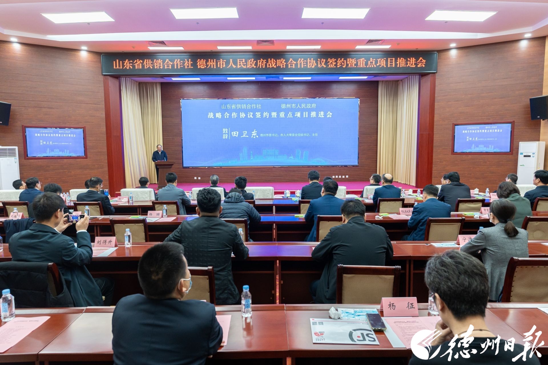 田卫东在致辞中表示,我们将认真落实战略合作协议,以最优服务、最强保障,推动合作事宜尽快落地落实,争取合作项目早日发挥效益。他希望全国供销总社、省供销社在资金、政策、项目等方面给予更大支持帮助,参与活动的各位领导多来德州考察指导,与会企业家深化在德州投资合作,携手谱写乡村振兴崭新篇章。