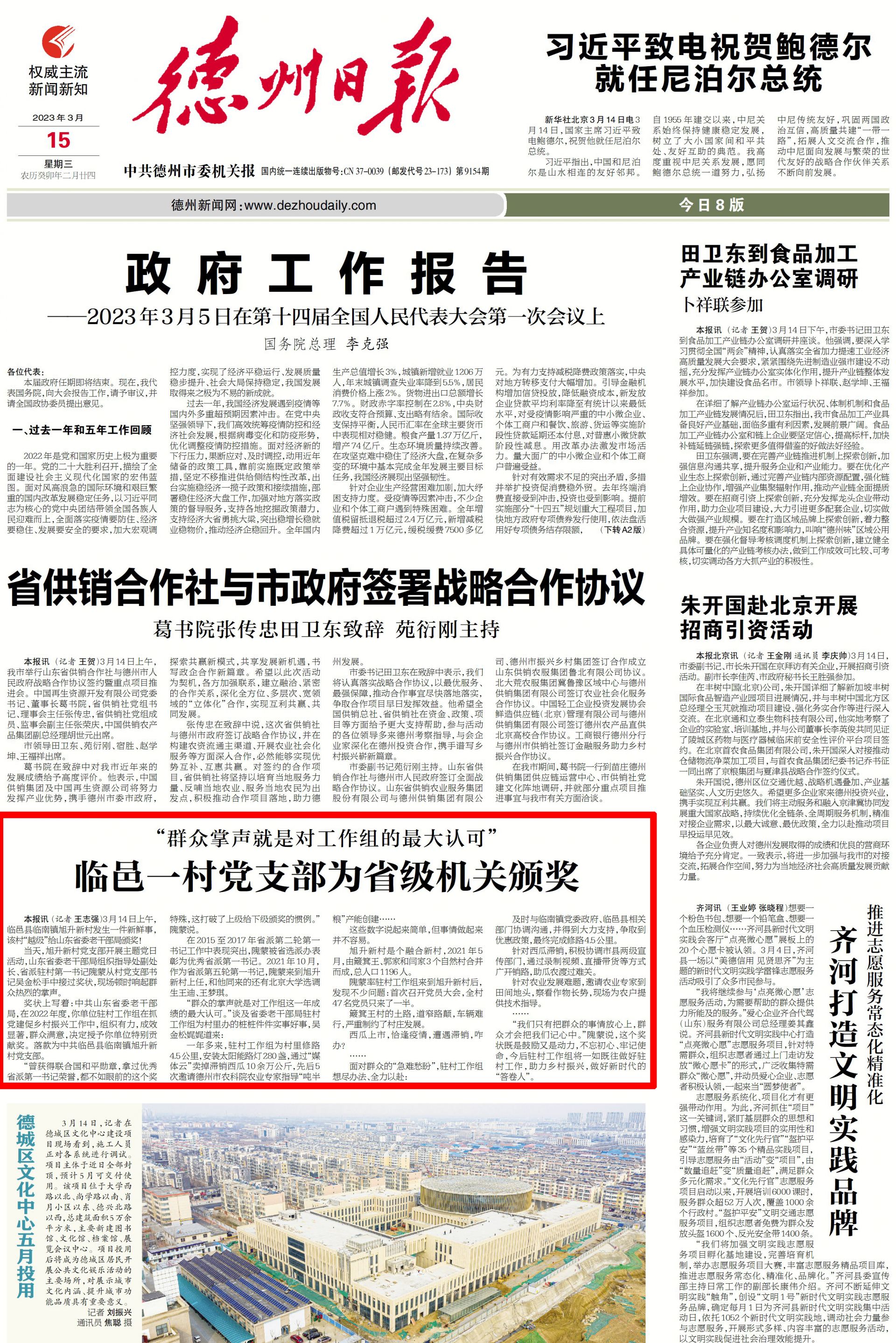 3月14日上午,临邑县临南镇旭升新村发生一件新鲜事,该村“越级”给山东省委老干部局颁奖!