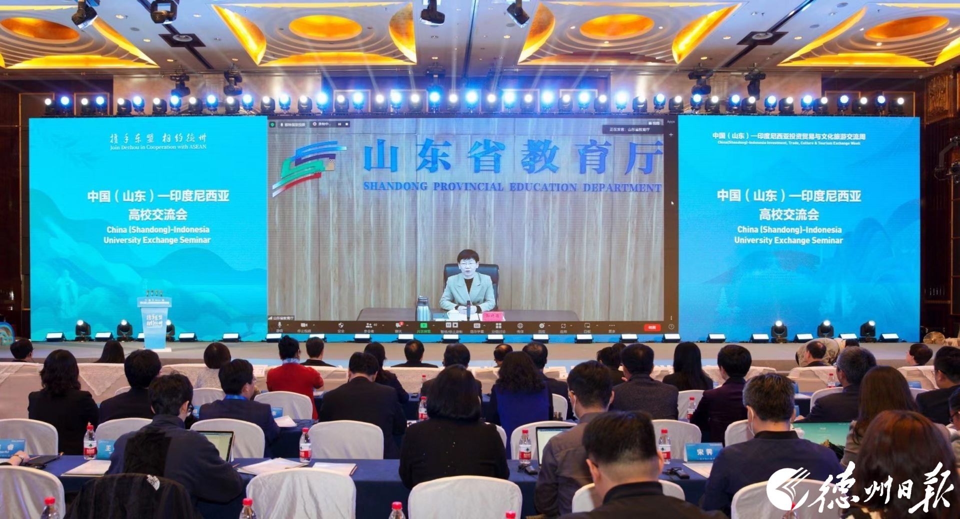 3月23日,中国(山东)—印度尼西亚高校交流会举办。印度尼西亚驻华大使周浩黎,中国—东盟中心秘书长史忠俊,省委外办副主任孙业宝,省教育厅副厅长孙晓筠,副市长陈晓强,德州学院党委书记车滨通过线上或线下方式参加活动。