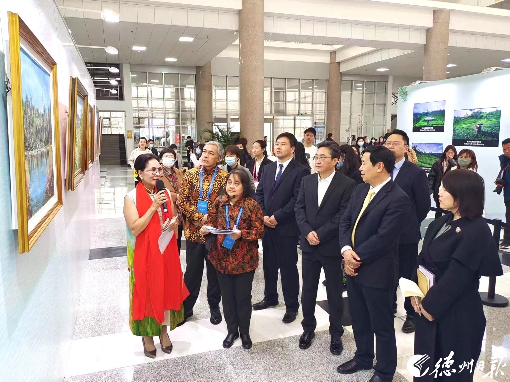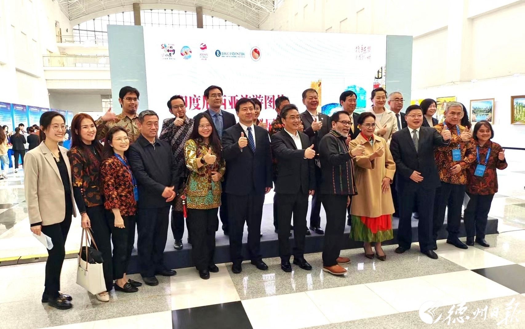 3月24日,出席“中国(山东)—印度尼西亚投资贸易与文化旅游交流周”活动的部分嘉宾,参观了印度尼西亚旅游图片绘画及特色产品展。印度尼西亚驻华大使周浩黎,中国—东盟中心秘书长史忠俊,省委外办副主任孙业宝,副市长陈海明参加。