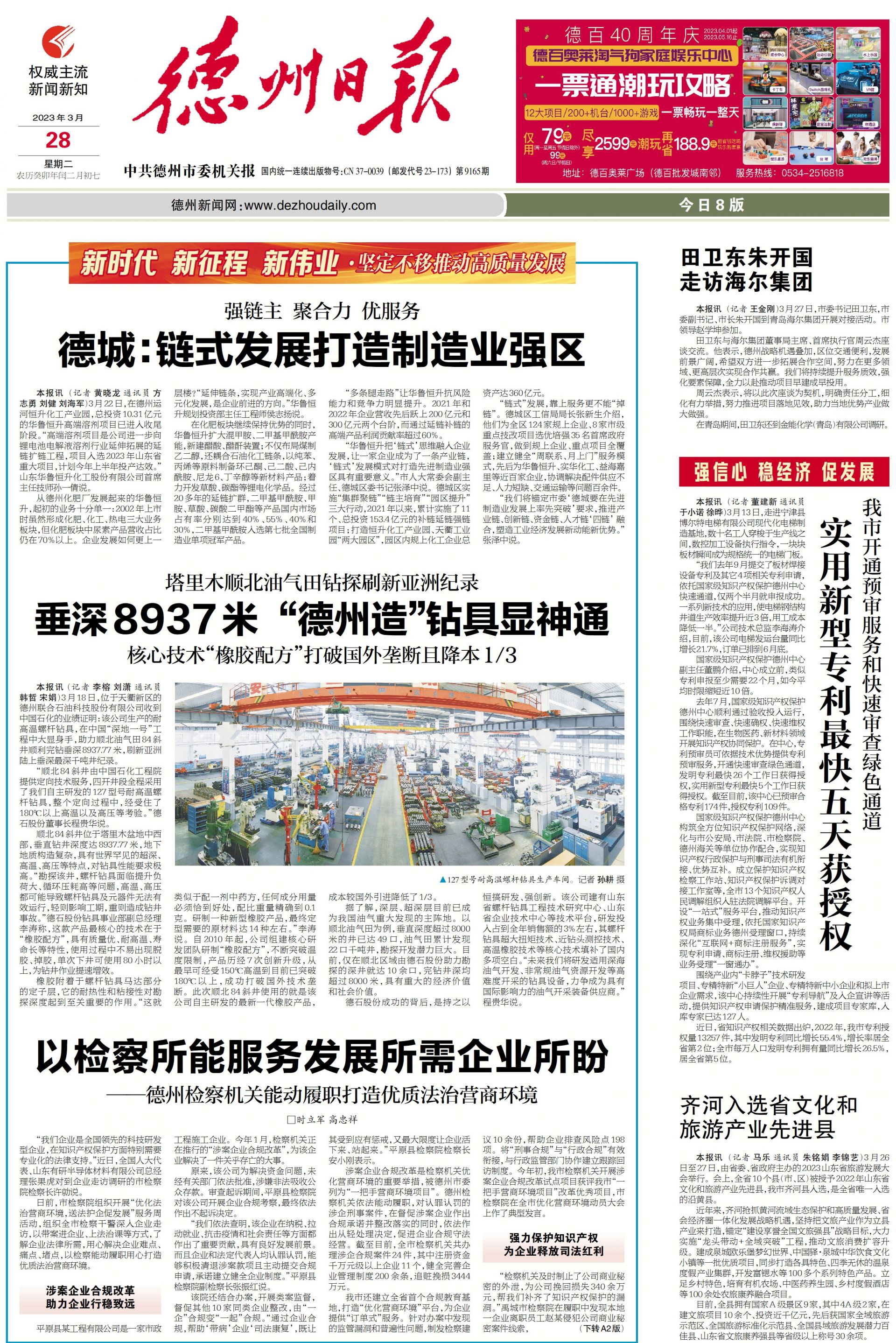“我们将锚定市委‘德城要在先进制造业发展上率先突破’要求,推进产业链、创新链、资金链、人才链‘四链’ 融合,塑造工业经济发展新动能新优势。”张泽中说。