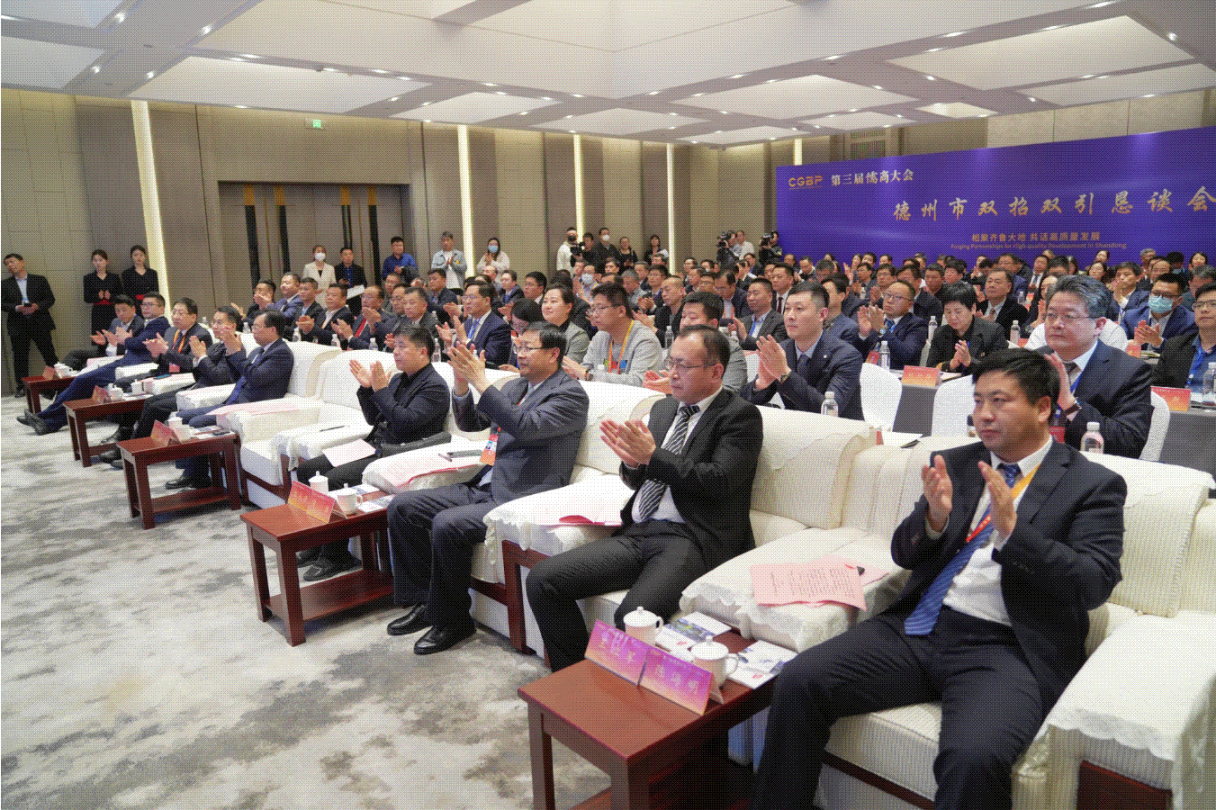 3月28日,德州市委市政府在省举办第三届儒商大会期间,于济南市举行德州市双招双引恳谈会,邀请中科院院士叶志镇等省内外专家学者、商协会代表、海外侨团代表、企业家朋友共话合作机遇,共谋发展大计。