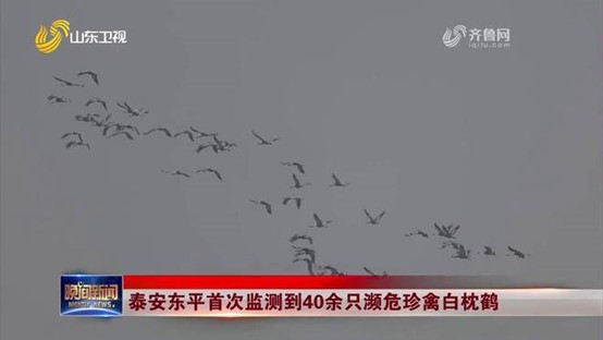 3月13日,泰安东平摄影爱好者在黄河下游最大的湖泊东平湖拍到40余只大型涉禽,经专家鉴定,确认为国家一级保护动物白枕鹤。
