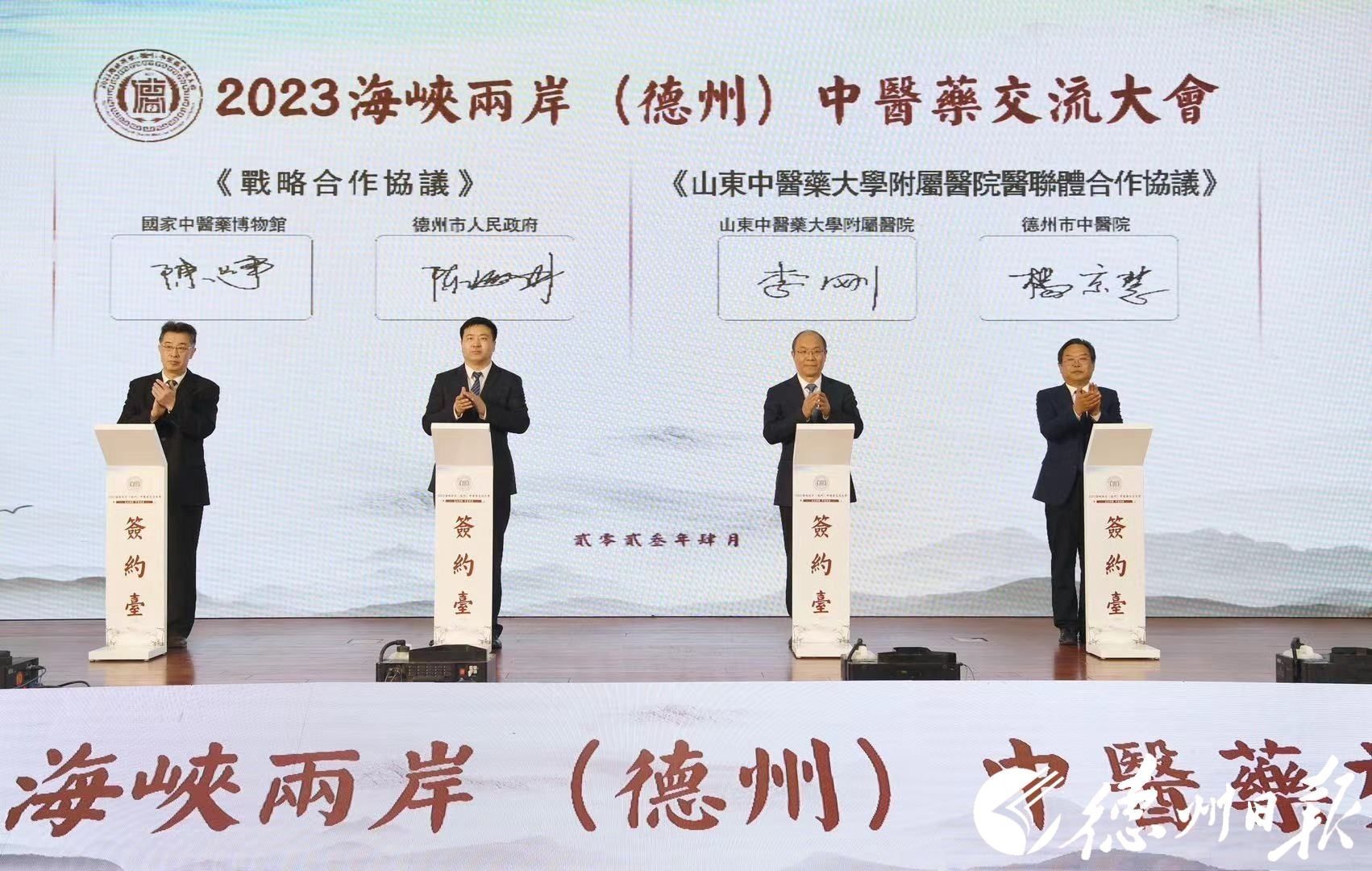4月28日上午,2023海峡两岸(德州)中医药交流大会召开。台湾立夫医药研究文教基金会董事长陈林颖曾,省政协副主席孙继业,省台港澳办主任张连三,市委书记田卫东,市委副书记、市长朱开国,市委副书记苑衍刚,国台办交流局副局长李京文,省卫健委副主任张立祥,市领导马广峰、赵学坤、王晓东、陈海明、齐永军等出席开幕式。
