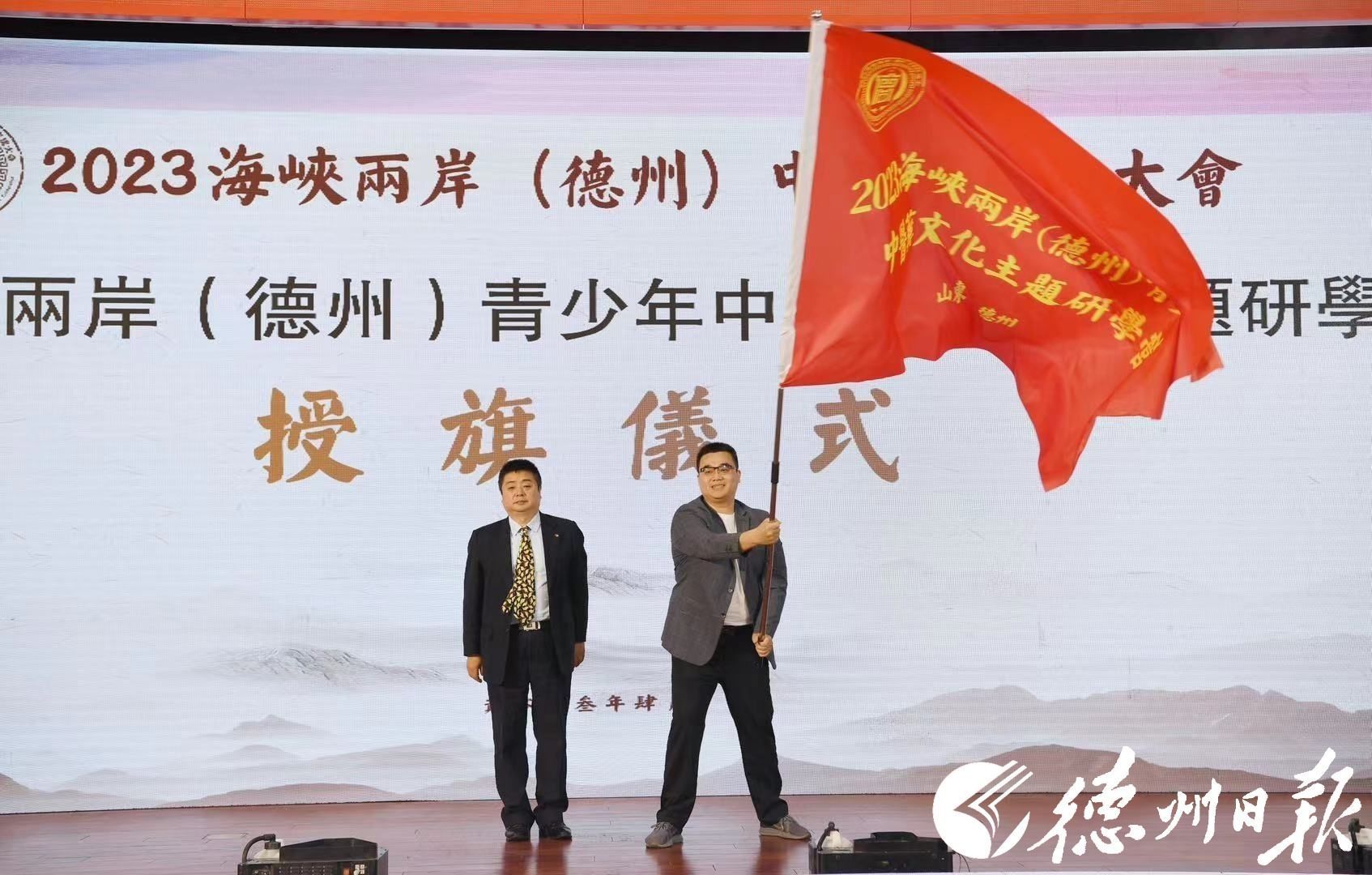 开幕式上,举行了2023海峡两岸(德州)青少年中医药文化主题研学营授旗仪式。李京文为研学营执行长、台湾广颖兰铎股份有限公司总监林宏伦授旗。2022年,首届海峡两岸(德州)青少年中医药文化主题夏令营活动举办,50名青少年参观了各大中医院、中药文化基地以及中草药种植基地,感受了中医药文化的博大精深和独特魅力。今年的研学营将在8月启动。