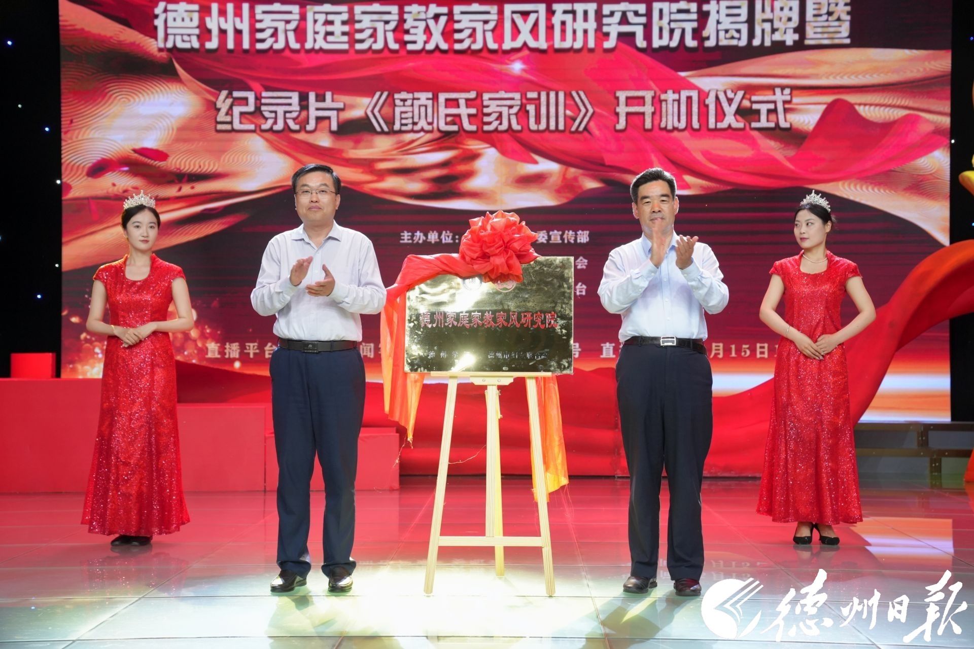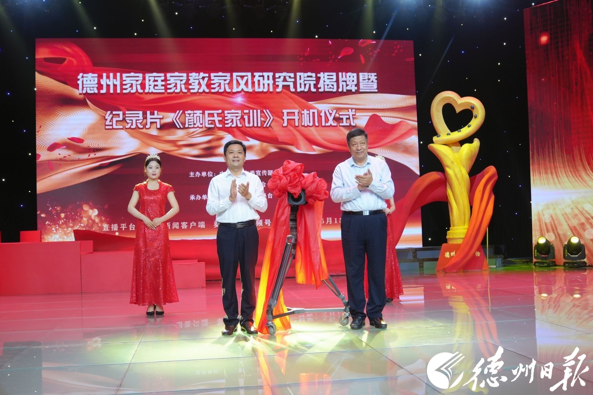 活动中,岳利娟代表省妇联向德州家庭家教家风研究院的成立、纪录片《颜氏家训》开机表示热烈祝贺,向“最美家庭”获得者及德州市广大家庭致以美好的祝福。苑衍刚、赵长林为德州家庭家教家风研究院揭牌。王晓东、才玉璞为纪录片《颜氏家训》开机剪彩。