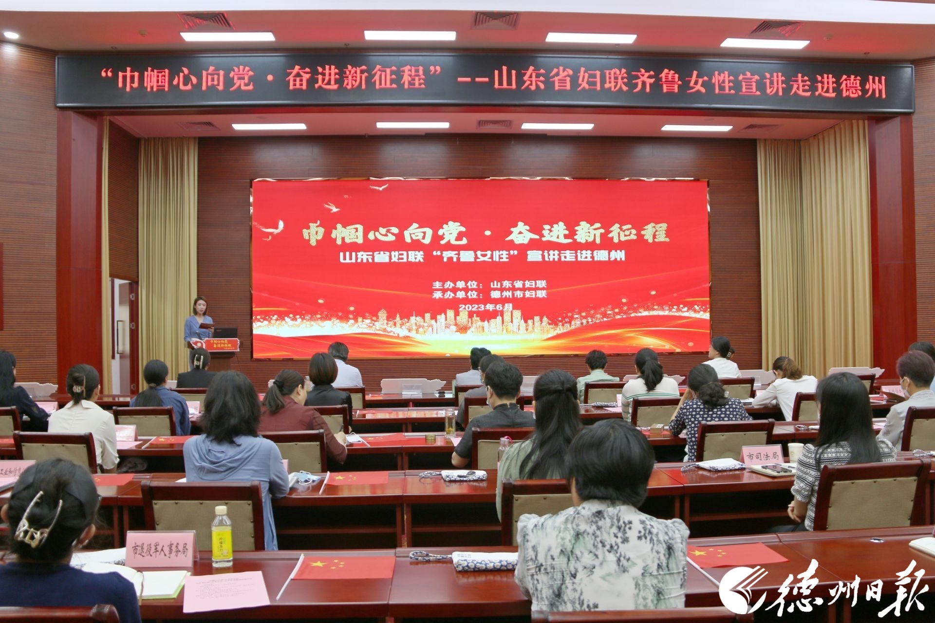 6月7日上午,“巾帼心向党·奋进新征程”山东省妇联“齐鲁女性”宣讲走进德州,深入贯彻落实党的二十大精神,扎实推进学习贯彻习近平新时代中国特色社会主义思想主题教育。在市会展中心二楼,市直机关企事业单位妇联主席(妇委会主任)80余人现场聆听宣讲。宣讲还通过山东广播电视台进行线上直播。