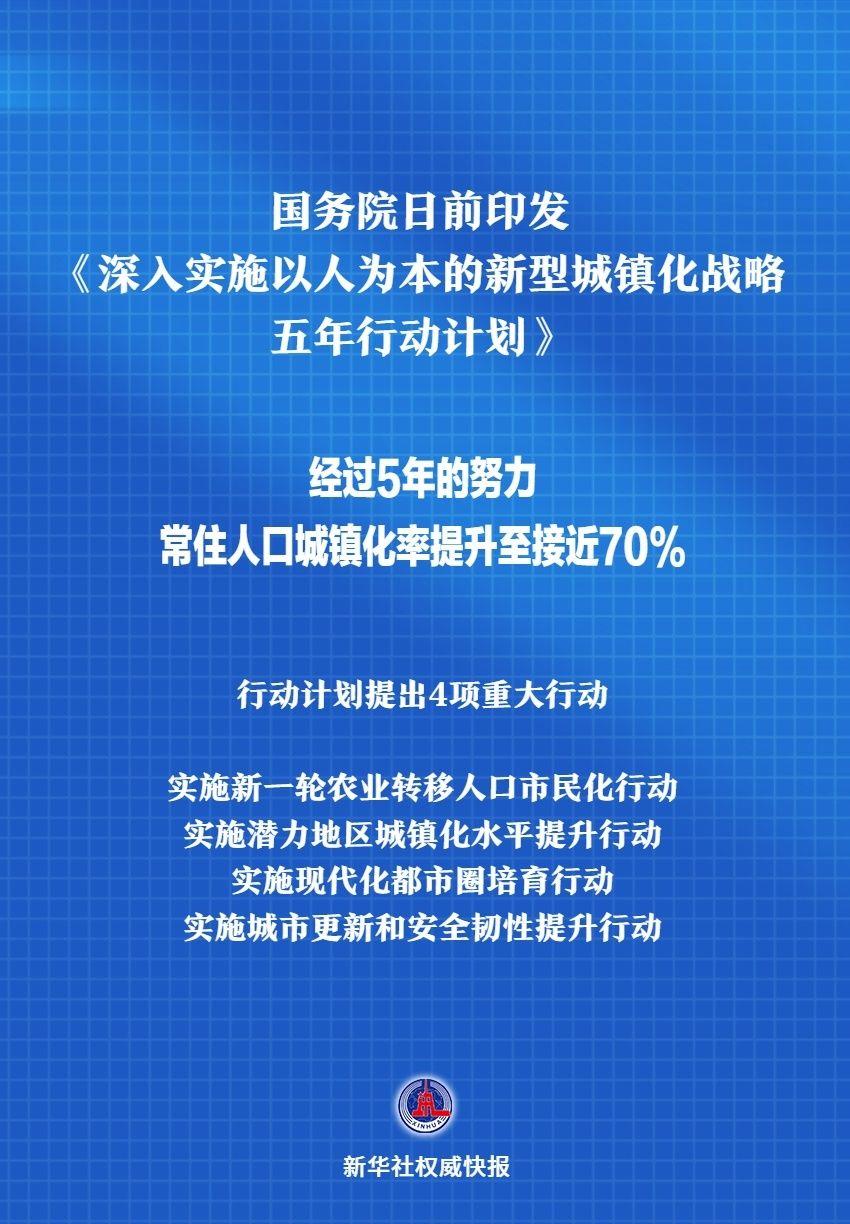 国务院印发《深入实施以人为本的新型城镇化战略五年行动计划》 2024-07-31 19:10 新华社 0 国务院日前印发《深入实施以人为本的新型城镇化战略五年行动计划》,提出4项重大行动:一是实施新一轮农业转移人口市民化行动,二是实施潜力地区城镇化水平提升行动,三是实施现代化都市圈培育行动,四是实施城市更新和安全韧性提升行动。