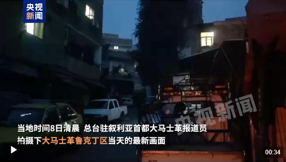 当地时间12月8日清晨,总台驻叙利亚首都大马士革报道员拍摄下大马士革鲁克丁区当天的最新画面。