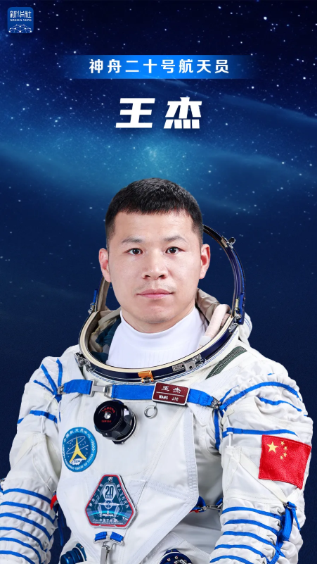 王杰,男,汉族,籍贯内蒙古巴彦淖尔,博士学位。1989年9月出生,2021年1月入伍,2009年6月加入中国共产党,现为中国人民解放军航天员大队四级航天员,陆军上校军衔。曾任中国航天科技集团有限公司工程师。2020年9月入选为我国第三批航天员。经全面考评,入选神舟二十号载人飞行任务乘组。