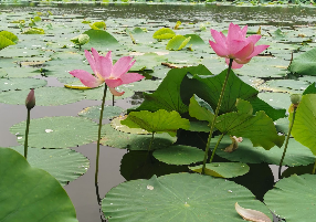猛然间,一幅长卷映入眼帘,“接天莲叶无穷碧,映日荷花别样红”,荷塘之美,美的经典,美的简约,美的让人窒息,美的沁人心扉,相信即使杨万里生在当下,站在面前,也是同样的诗句。