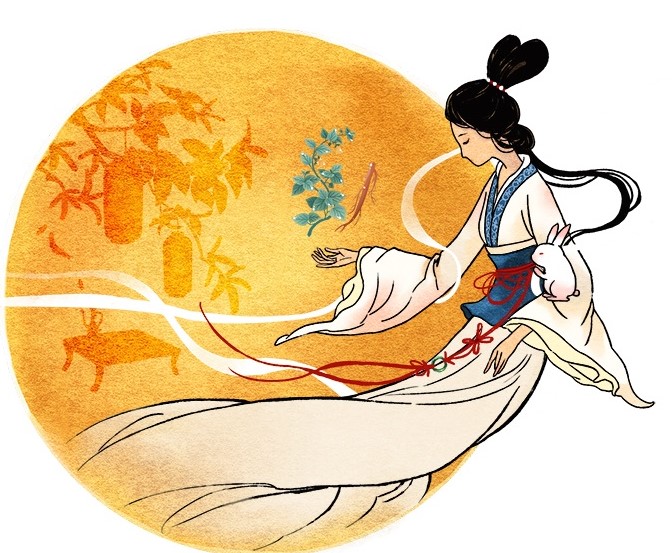 月色皎皎,月光澹澹,吃了仙丹飞升上天的嫦娥在广寒宫里终日寂寞度日,她非常想念自己的家乡和亲人。一次,她偶然俯瞰家乡的方位,突然看见那里升起缕缕瘴气,便知道故乡正在闹瘟疫,她心急如焚,立即赶到玉清宫向玉皇大帝汇报并请求下凡拯救黎民百姓。得到玉帝谕旨后,她便长袖一舞,把具有很多富含药物成分的草籽撒了下去,然后和玉兔装扮成一位风度翩翩的公子与书童下凡来到人间。