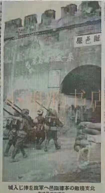 这是一张日军攻进临邑县城东门的照片,此照刊登在日本1937年《朝日新闻》上。照片是上海一位收藏爱好者从日本翻拍的。(刘天爱提供)