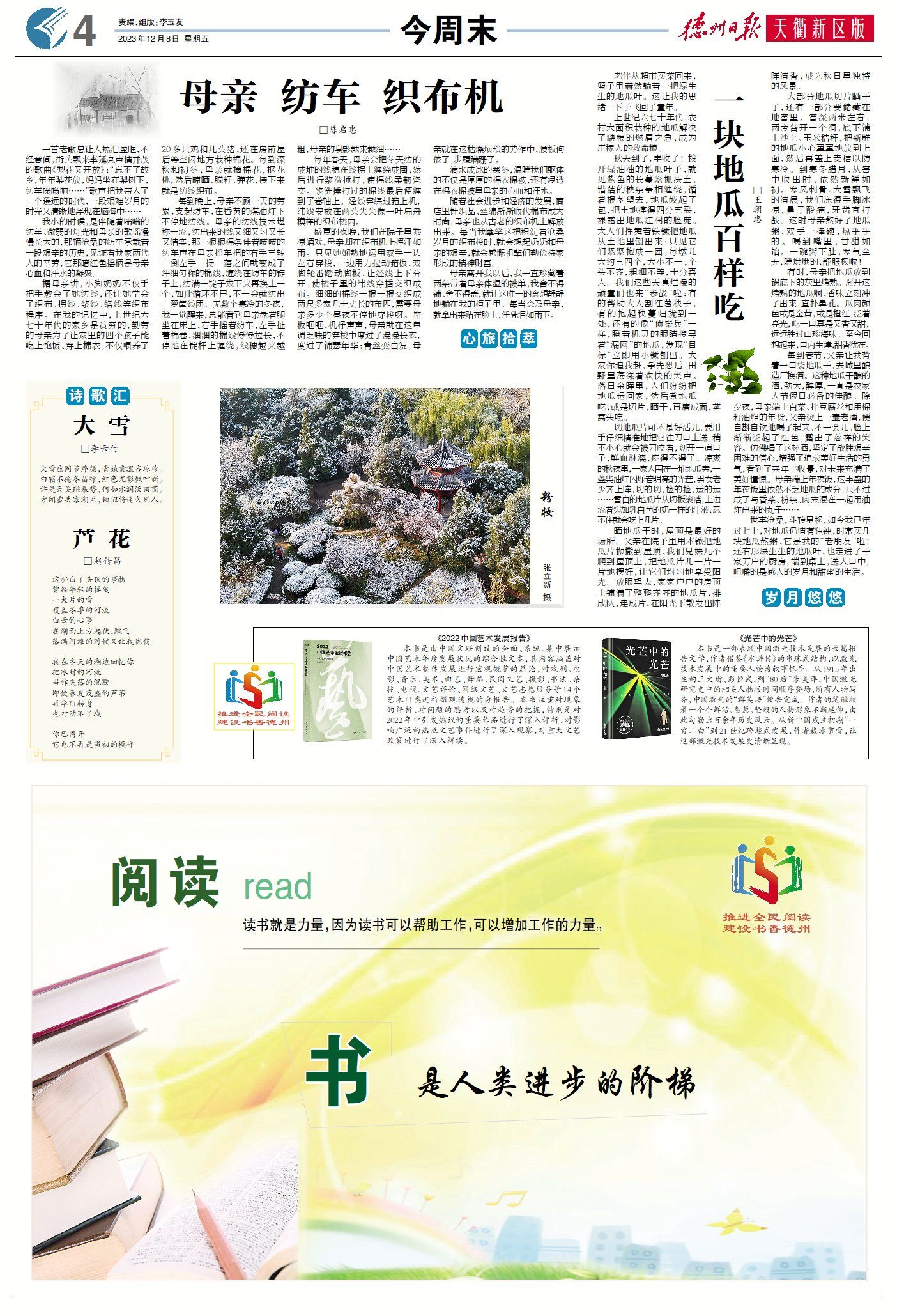 随着社会进步和经济的发展,商店里针织品、丝绵渐渐取代棉布成为时尚,母亲也从古老的织布机上解放出来。每当我摩挲这把积淀着沧桑岁月的织布梭时,就会想起奶奶和母亲的艰辛,就会感慨祖辈们勤俭持家形成的精神财富。